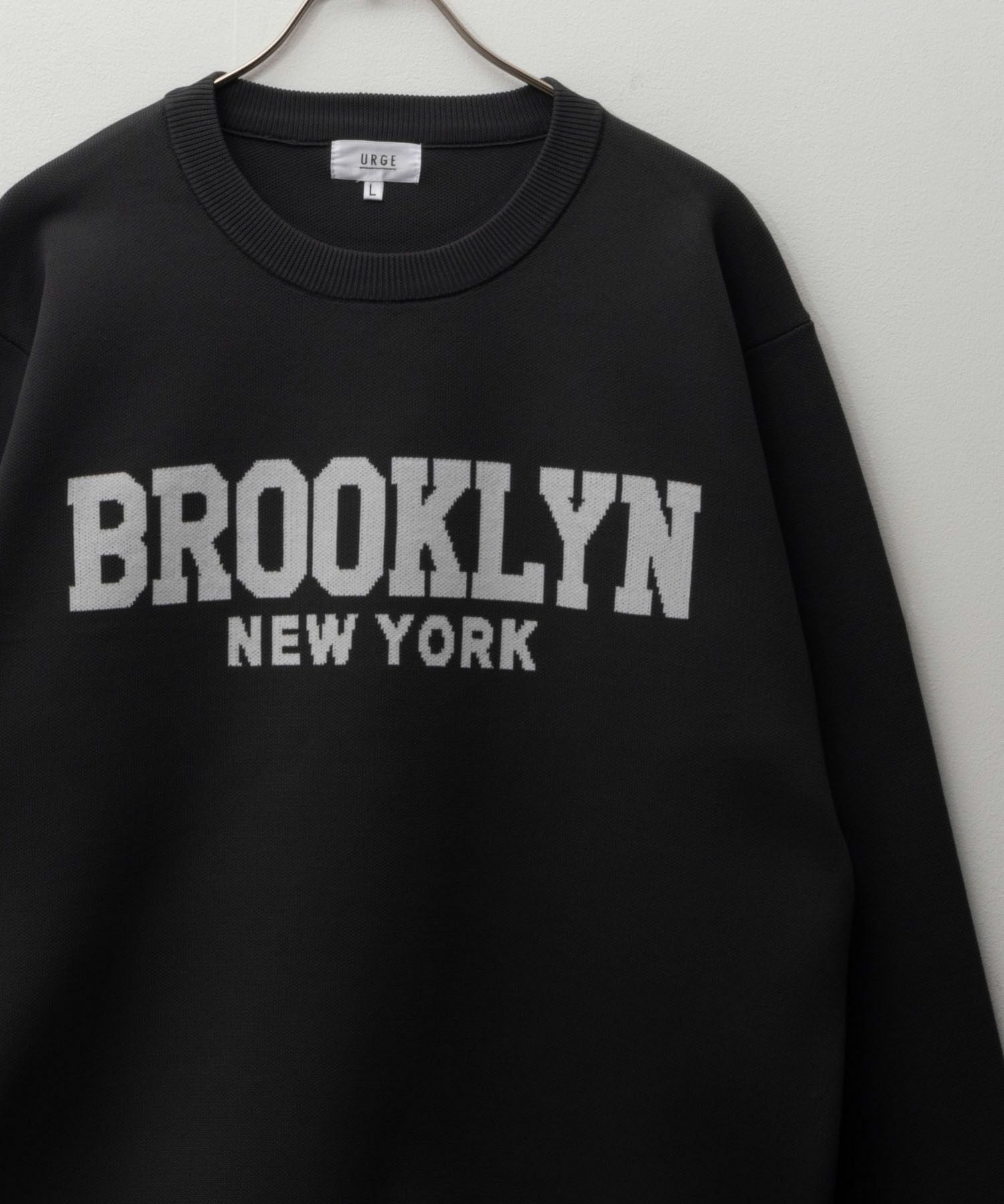 ニット セーター 7ゲージ ミドルゲージ ロゴ リブ 黒 クルーネック ユニセックス レディース