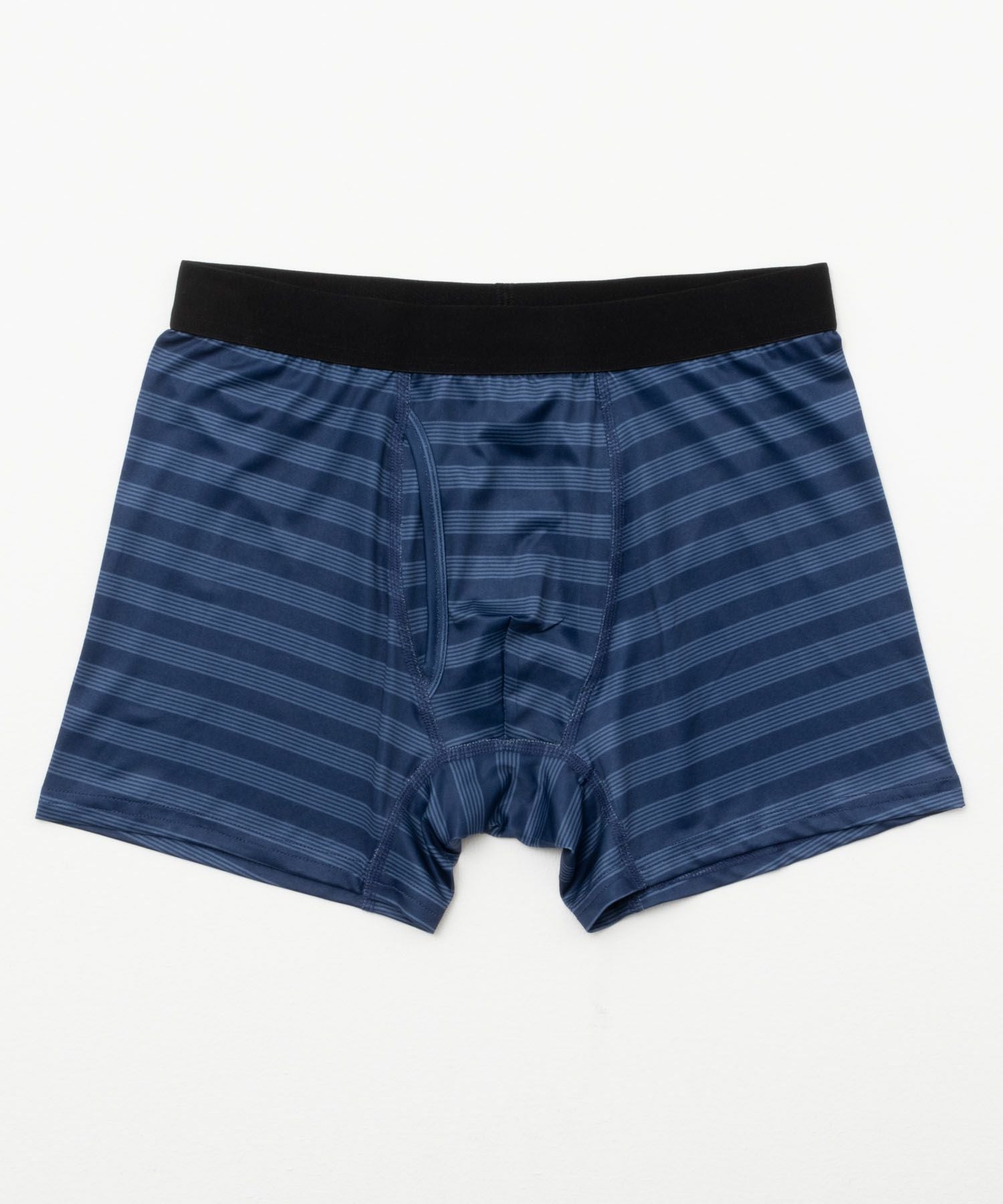 ネイビー ボクサーパンツ アンダーウェア 吸湿性 吸汗 抗菌防臭 伸縮性 ストレッチ 前開き ボーダー 下着 肌着 インナー