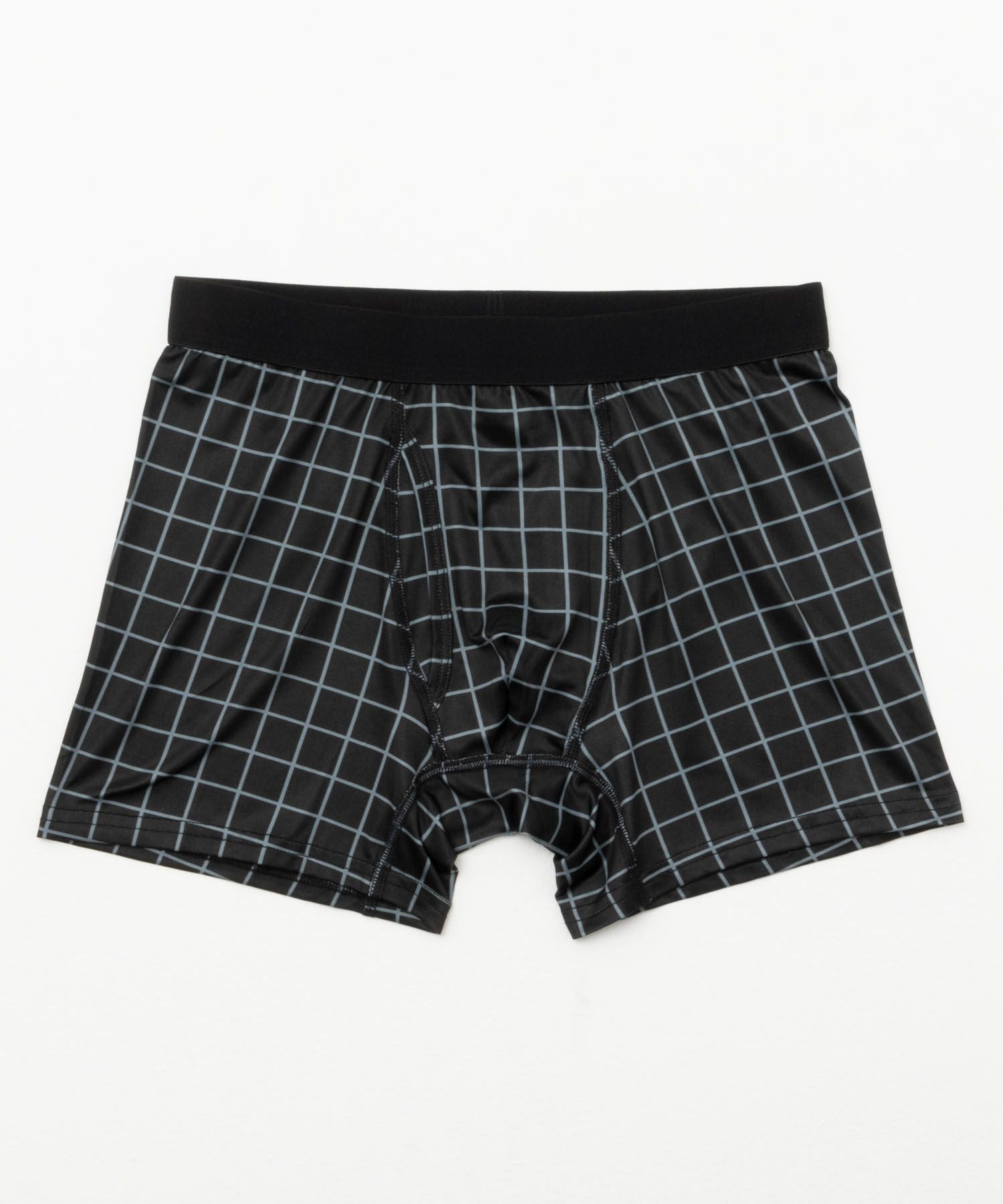 ネイビー ボクサーパンツ アンダーウェア 吸湿性 吸汗 抗菌防臭 伸縮性 ストレッチ 前開き チェック 下着 肌着 インナー