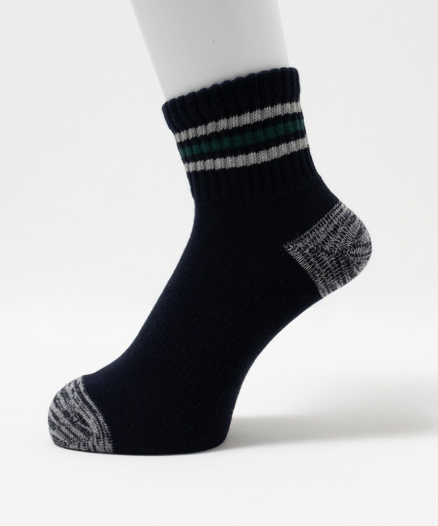 ネイビー 靴下 ソックス 1足 足底パイル クッション性 蒸れにくい 吸水性 ホールド感 フィット リブ 三本ライン クォーター丈 くつ下