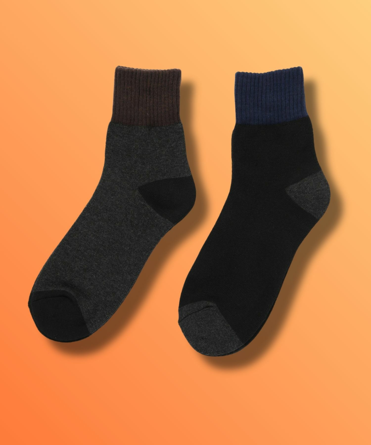 ネイビー 靴下 ソックス 2足セット 足底パイル あったか 保温 クッション性 配色切替 黒 クォーター丈 くつ下