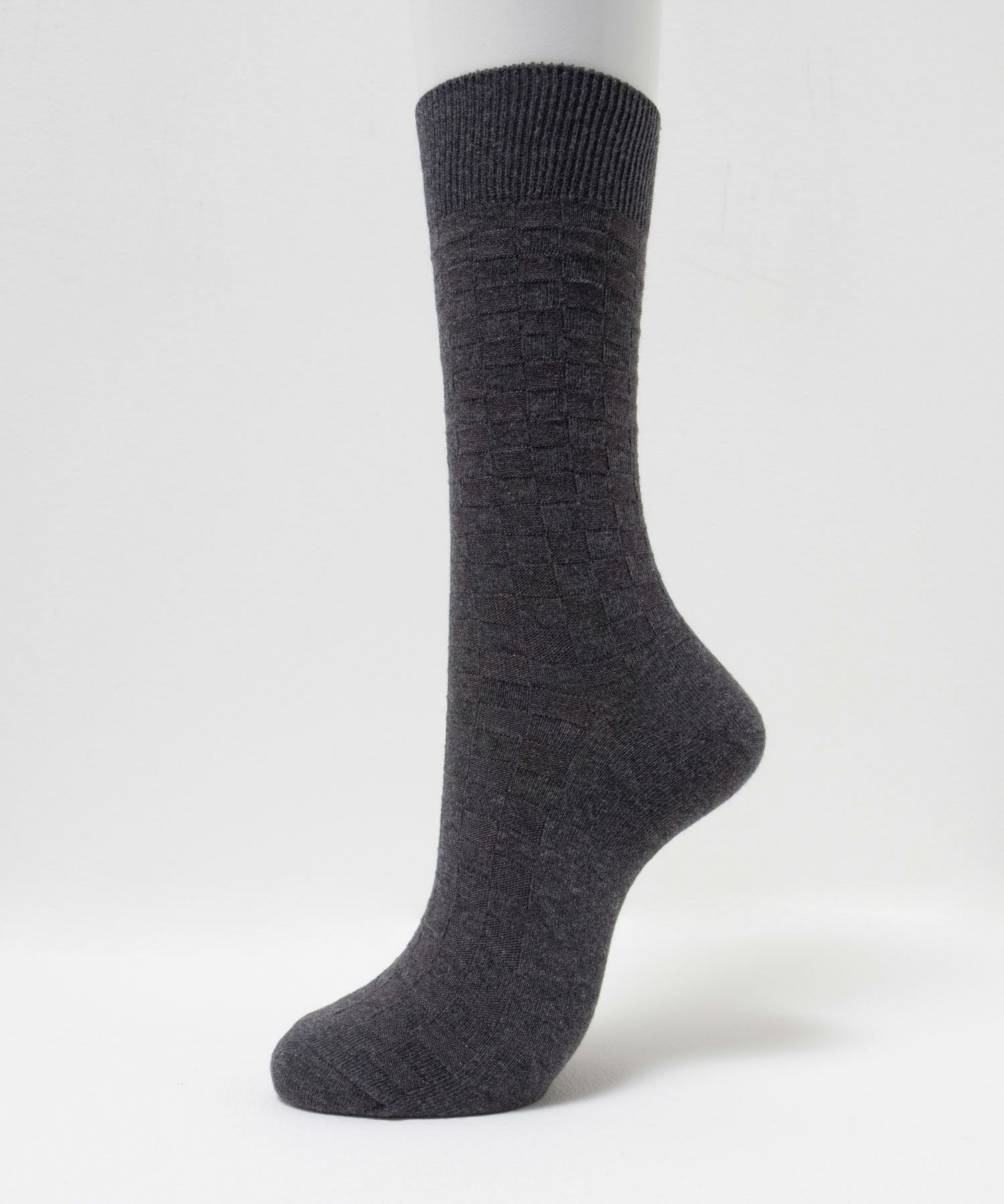 凹凸で表現したブロックチェック柄がさりげなく足元のアクセントに。