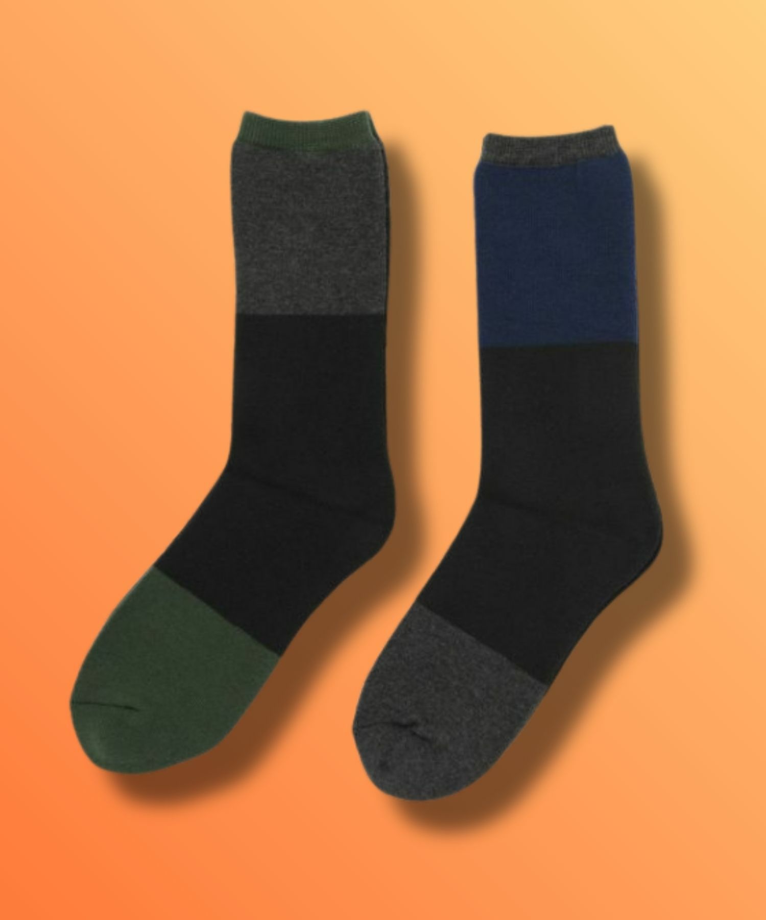 ネイビー 靴下 ソックス 2足セット 足底パイル あったか 保温 クッション性 配色切替 黒 クルー丈 くつ下