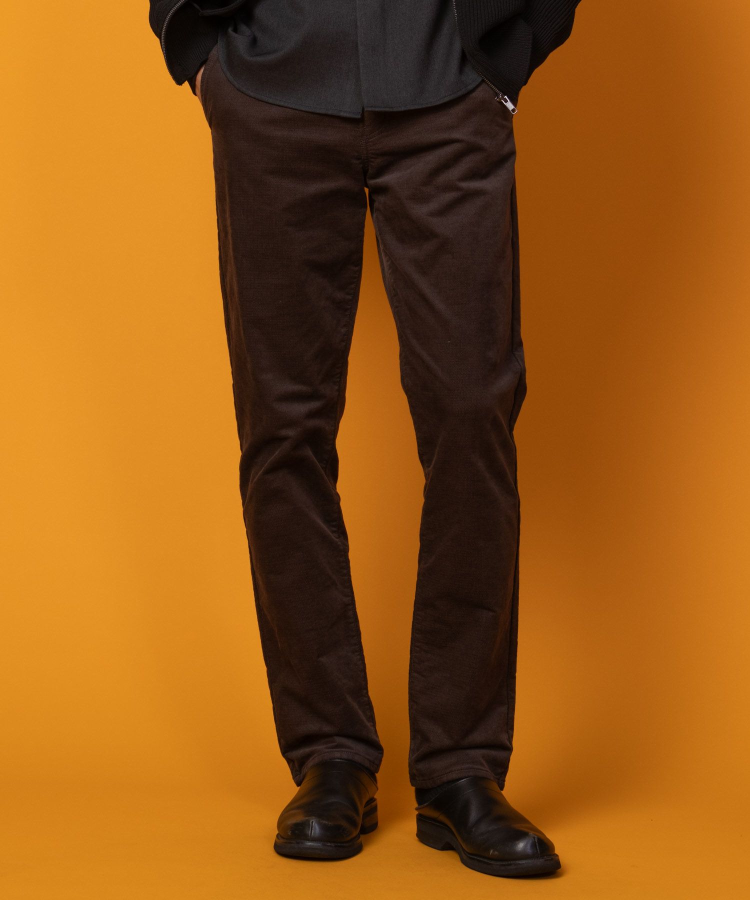 通常のストライプコーデュロイと違い、フラットで上品な光沢のある起毛生地。