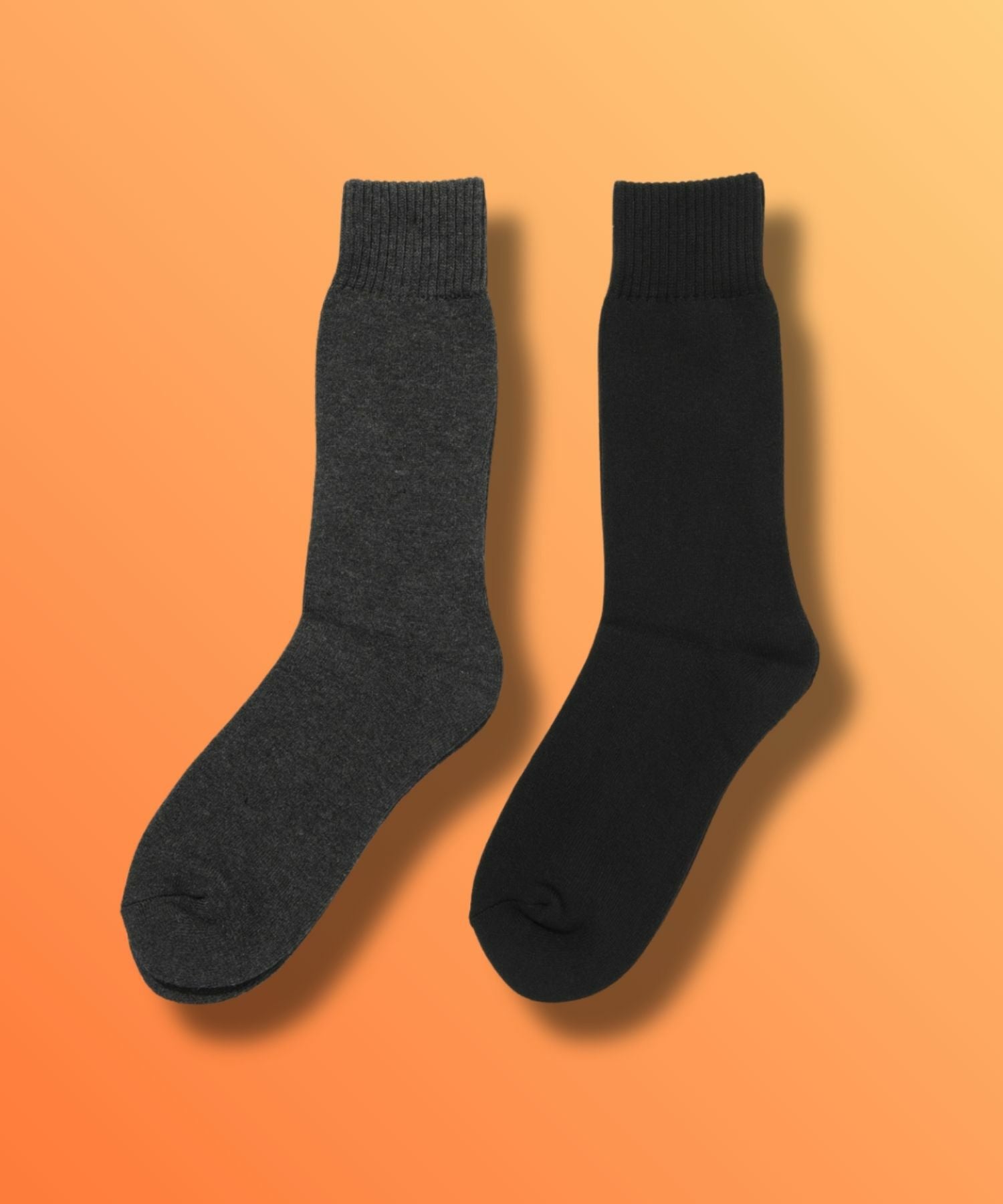 ネイビー 靴下 ソックス 2足セット 足底パイル あったか 保温 クッション性 無地 黒 クルー丈 ビジネス ビジカジ くつ下