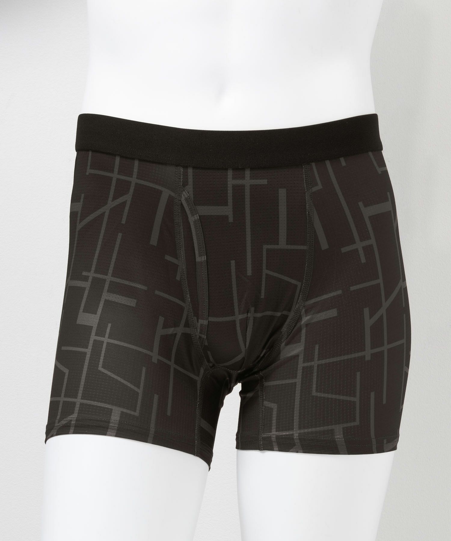 ネイビー ボクサーパンツ アンダーウェア 通気性 吸水速乾 抗菌 防臭 ストレッチ ドライ ジオメ柄 ジオメトリック柄 総柄 黒 下着 肌着 インナー