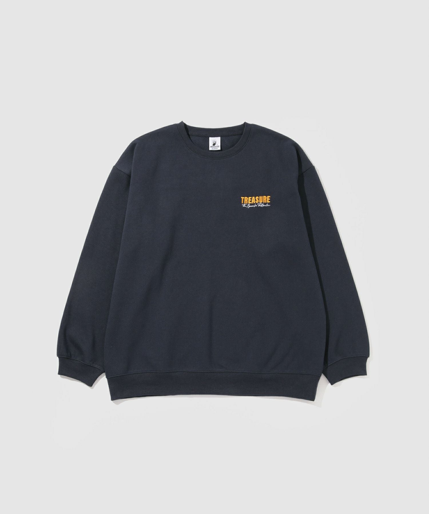 サガラ刺繍の立体感が映える、裏起毛トレーナー。
