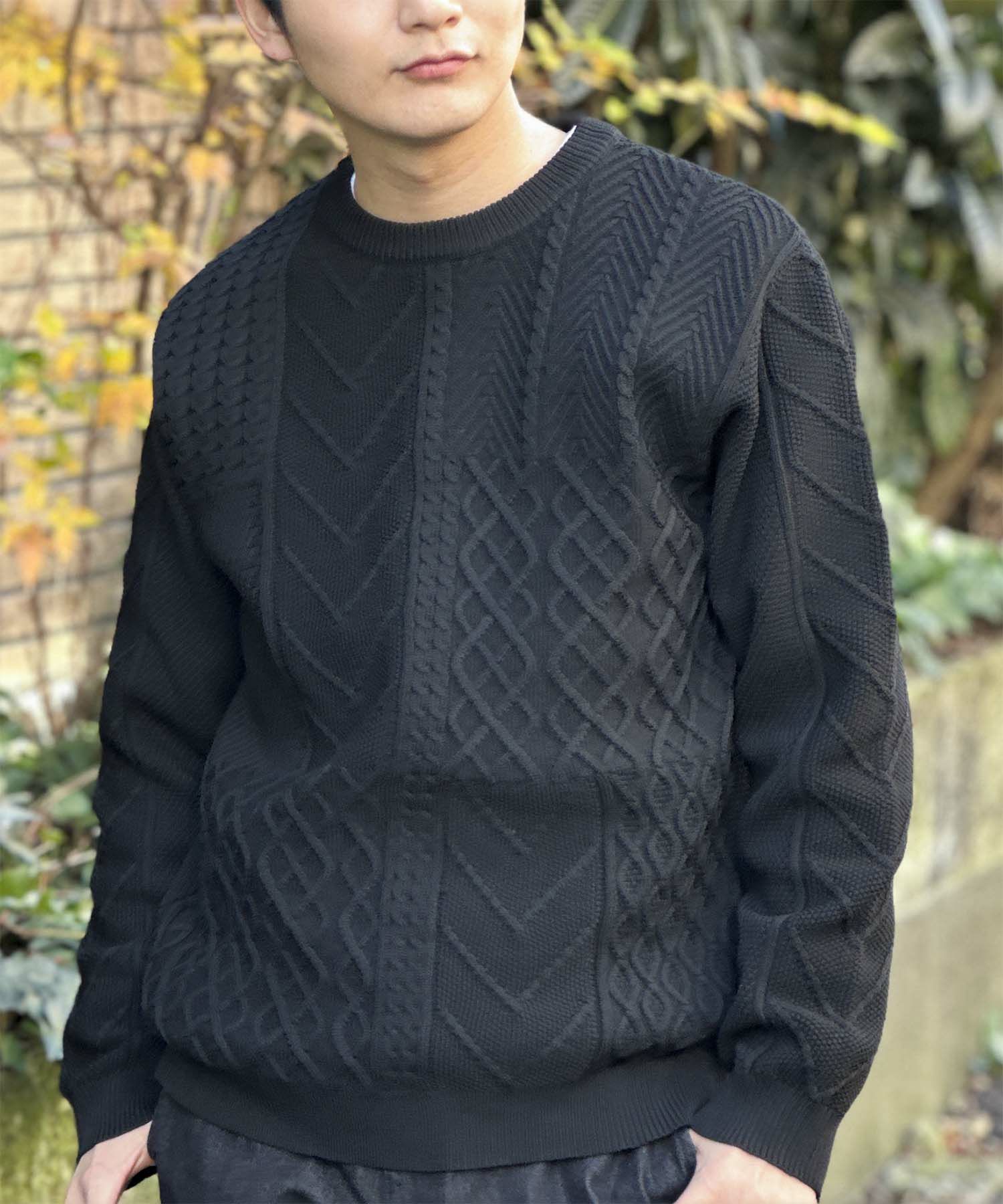 NAVY 快適ニット 幾何学柄モックネック メンズ