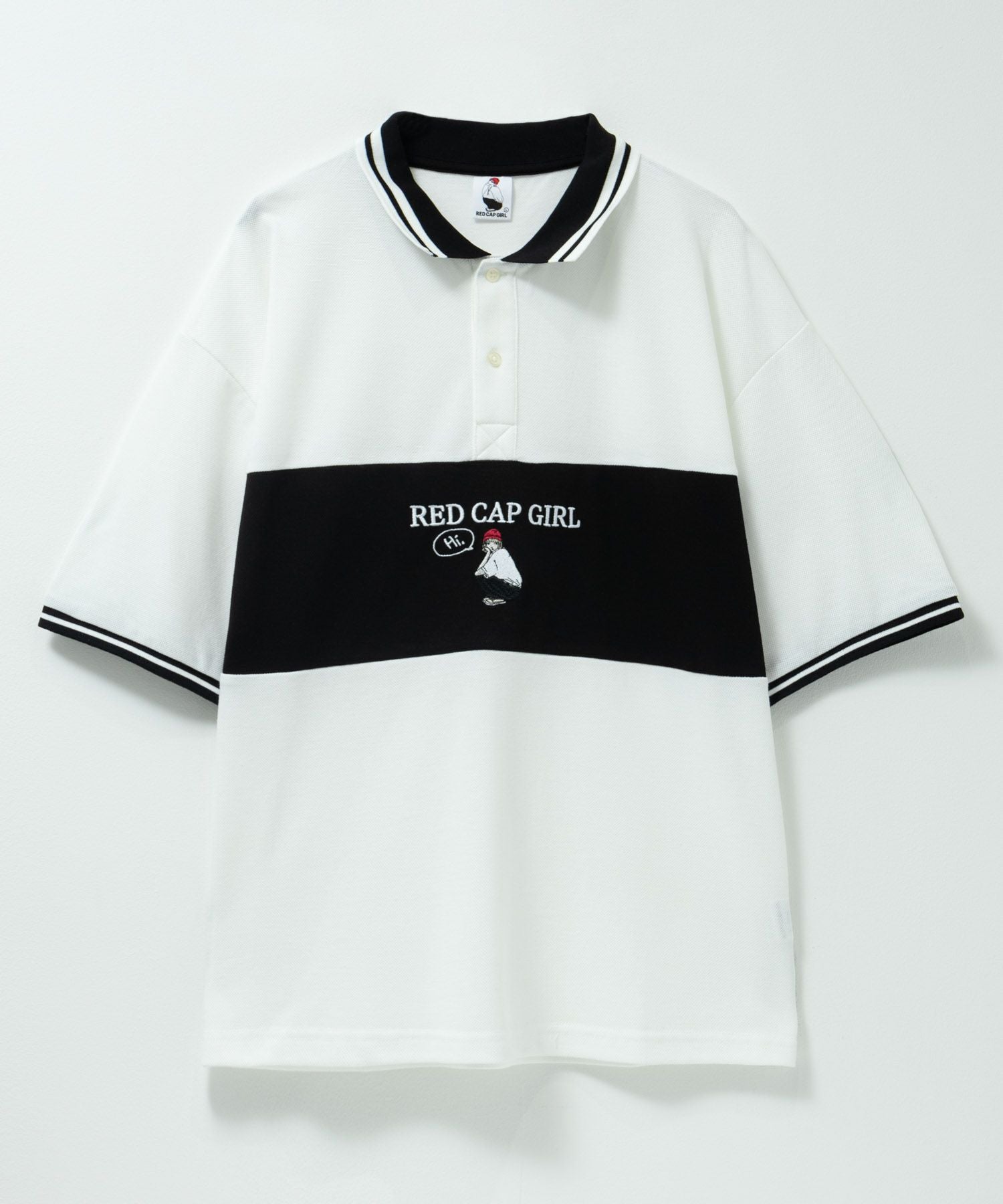 レッドキャップガール ポロシャツ 半袖 鹿の子素材 サイドスリット 刺繍 ライン 白 黒 レギュラーカラー ユニセックス レディース