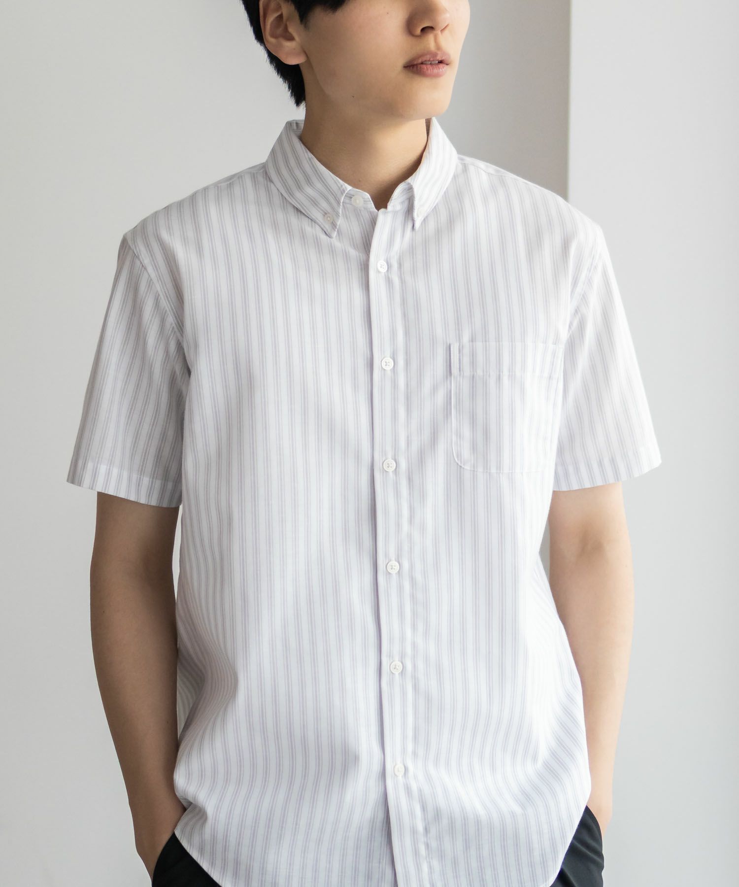 ネイビー 半袖シャツ カジュアルシャツ クールマックス 快適 胸ポケット 無地 ストライプ 白 シンプル ボタンダウンシャツ