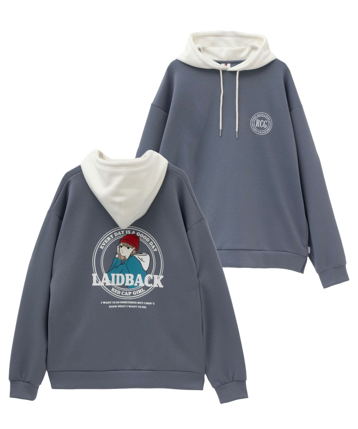 レッドキャップガール パーカー スウェット ポンチ素材 ストレッチ ルーズシルエット ポケット サイドスリット ロゴ刺繍 バックプリント 配色切替 白 黒 プルオーバー プルパーカー ユニセックス レディース