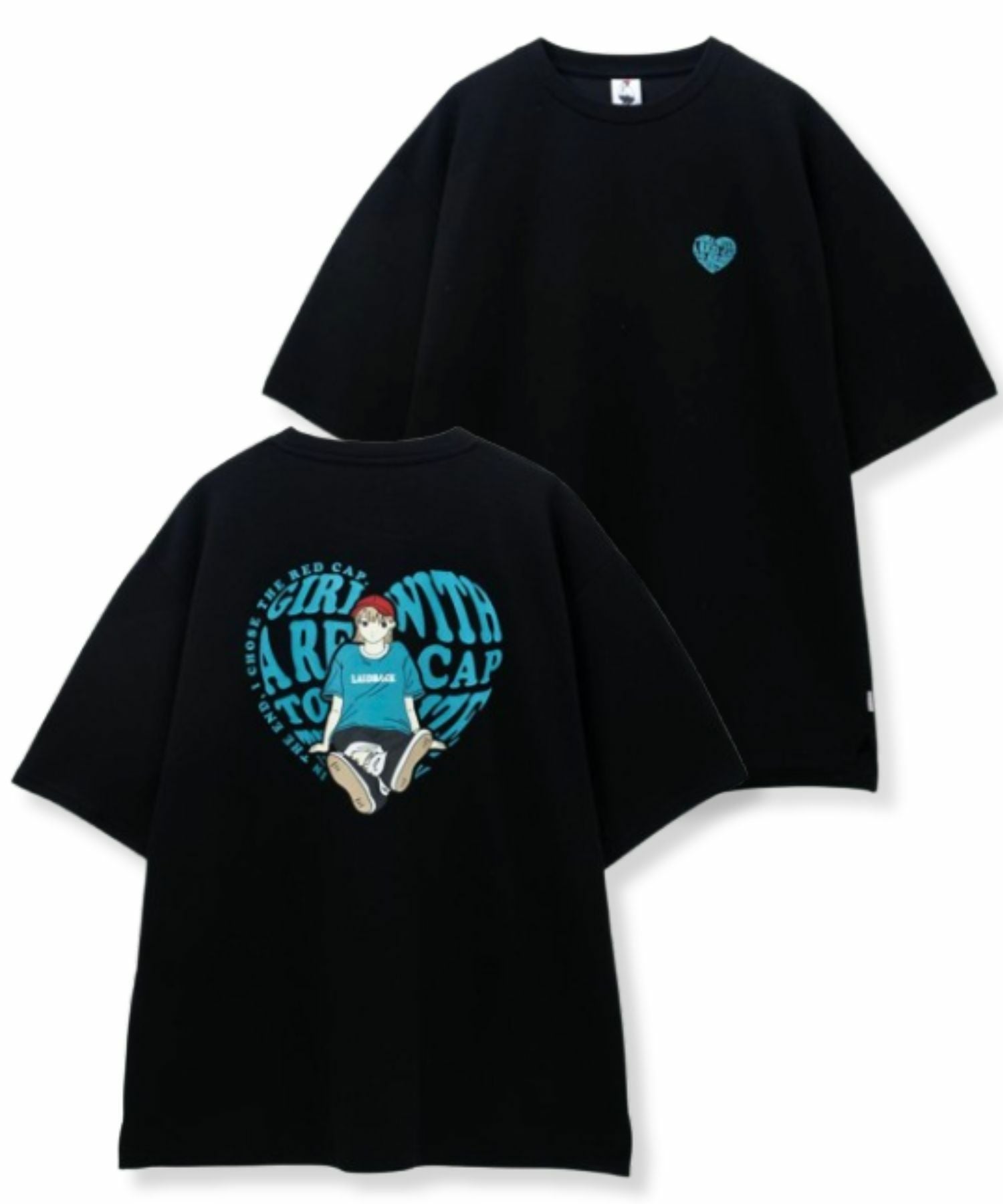 レッドキャップガール 半袖Tシャツ ポンチ素材 接触冷感 ひんやり ストレッチ バックプリント ハート 白 黒 クルーネック カットソー ユニセックス レディース