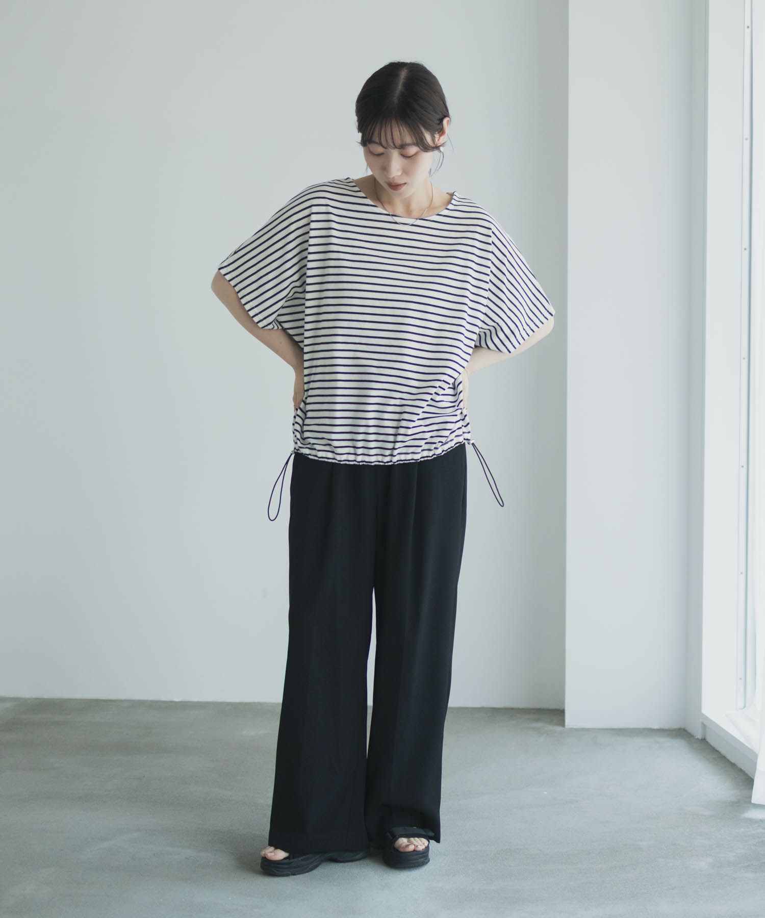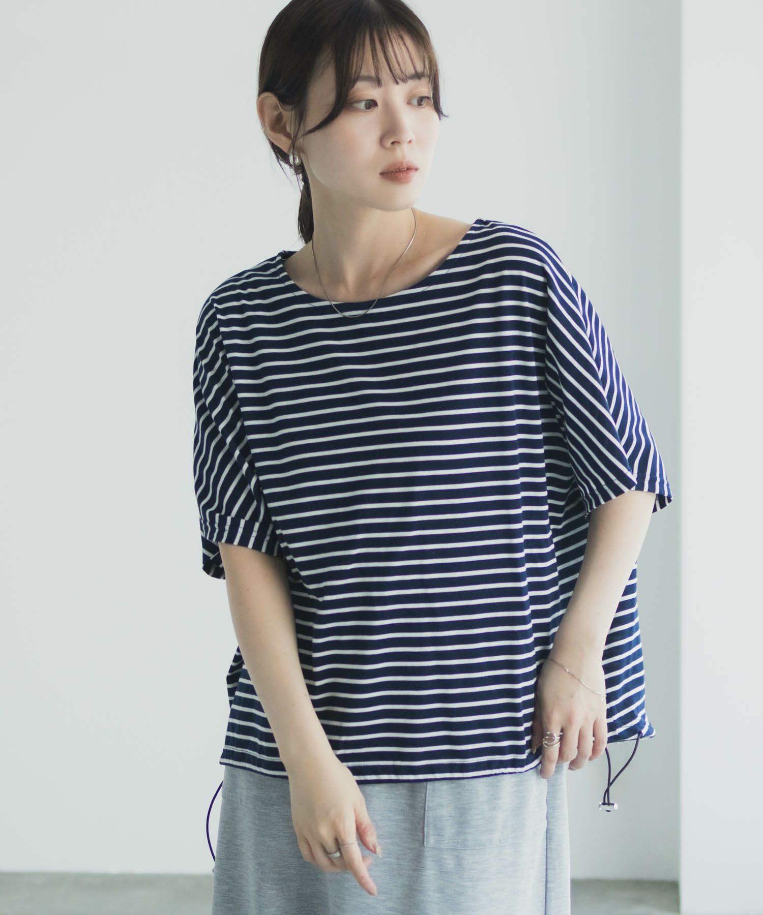 Idnes 裾ドロストボーダーカットソー レディース メール便 対応商品