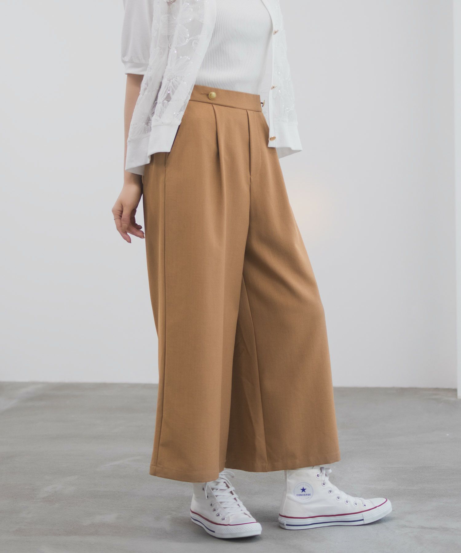 Idnes 釦付きワイドクロップドパンツ レディース