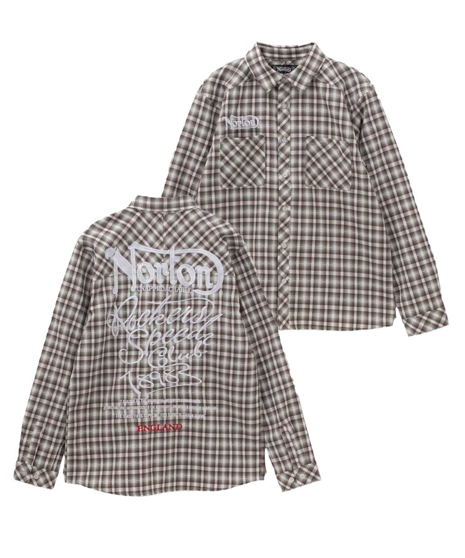 ノートン 長袖シャツ カジュアルシャツ 綿100% コットン 胸ポケット チェック柄 ロゴ 刺繍 ユニセックス レディース