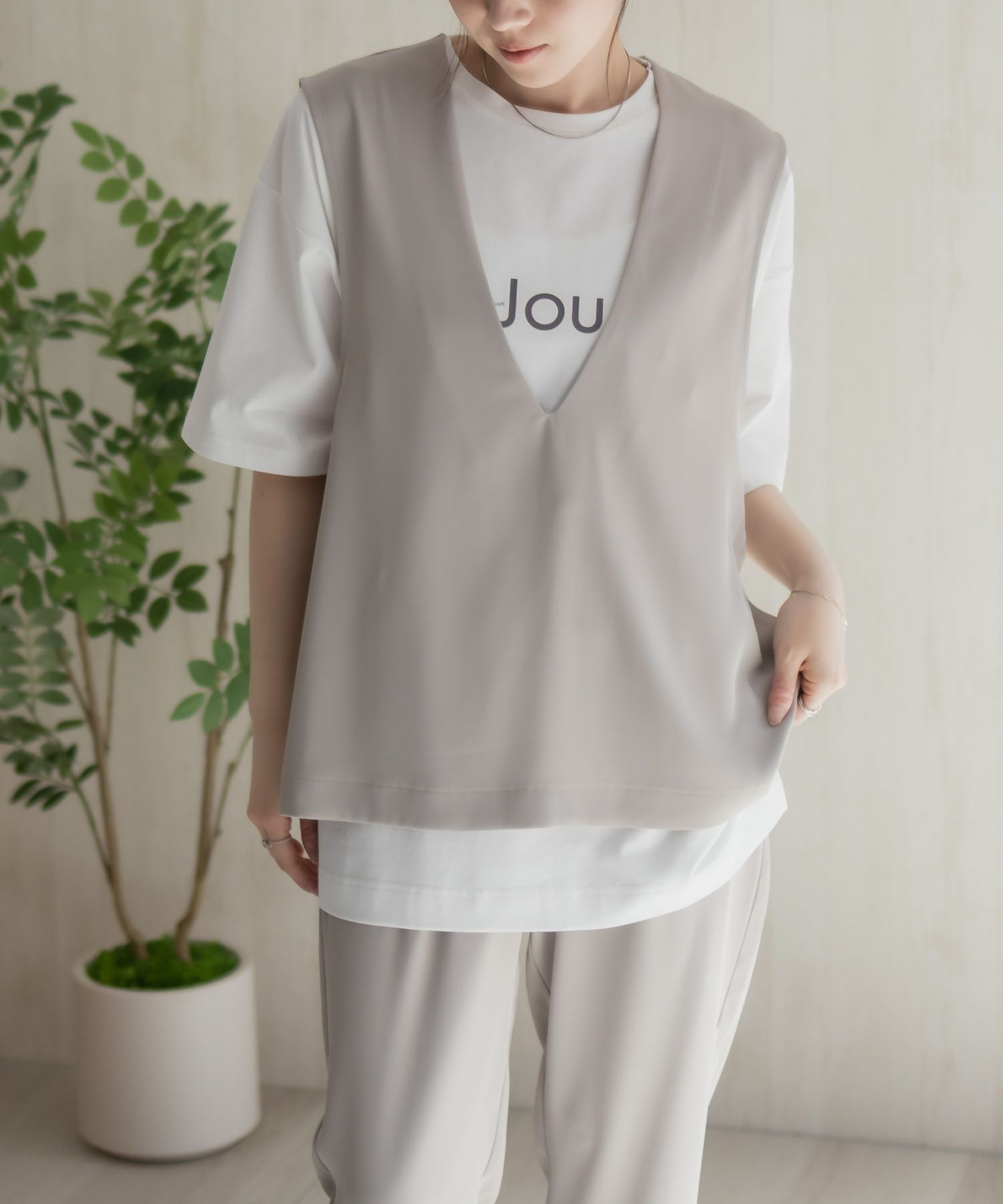 Tシャツに重ねるだけで旬顔コーデ完成!接触冷感Vネックジレ。