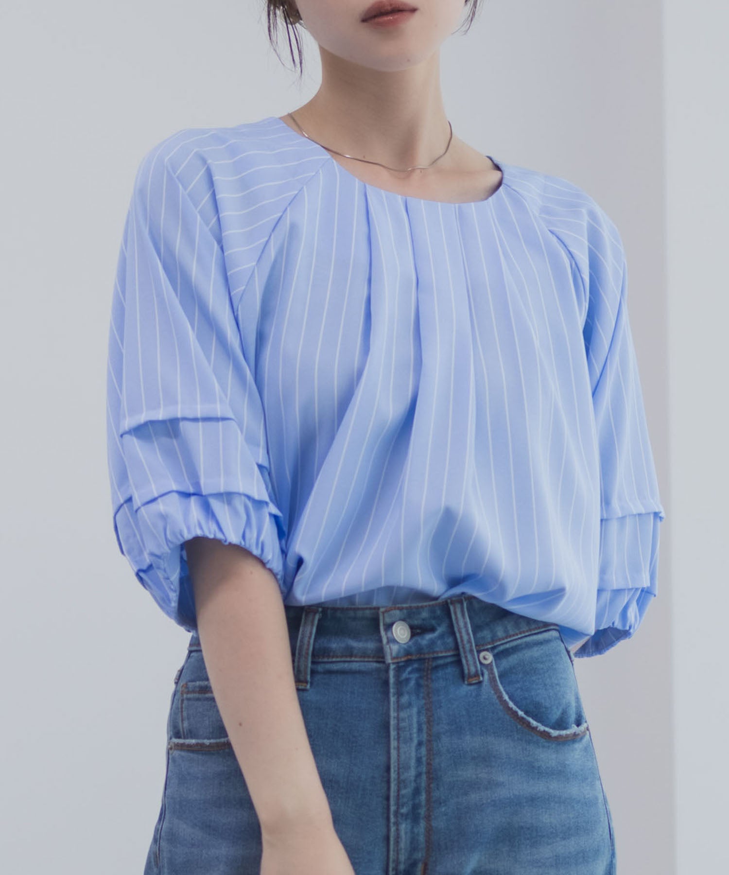 立体袖でこなれ感たっぷりの大人フレンチタックブラウス。
