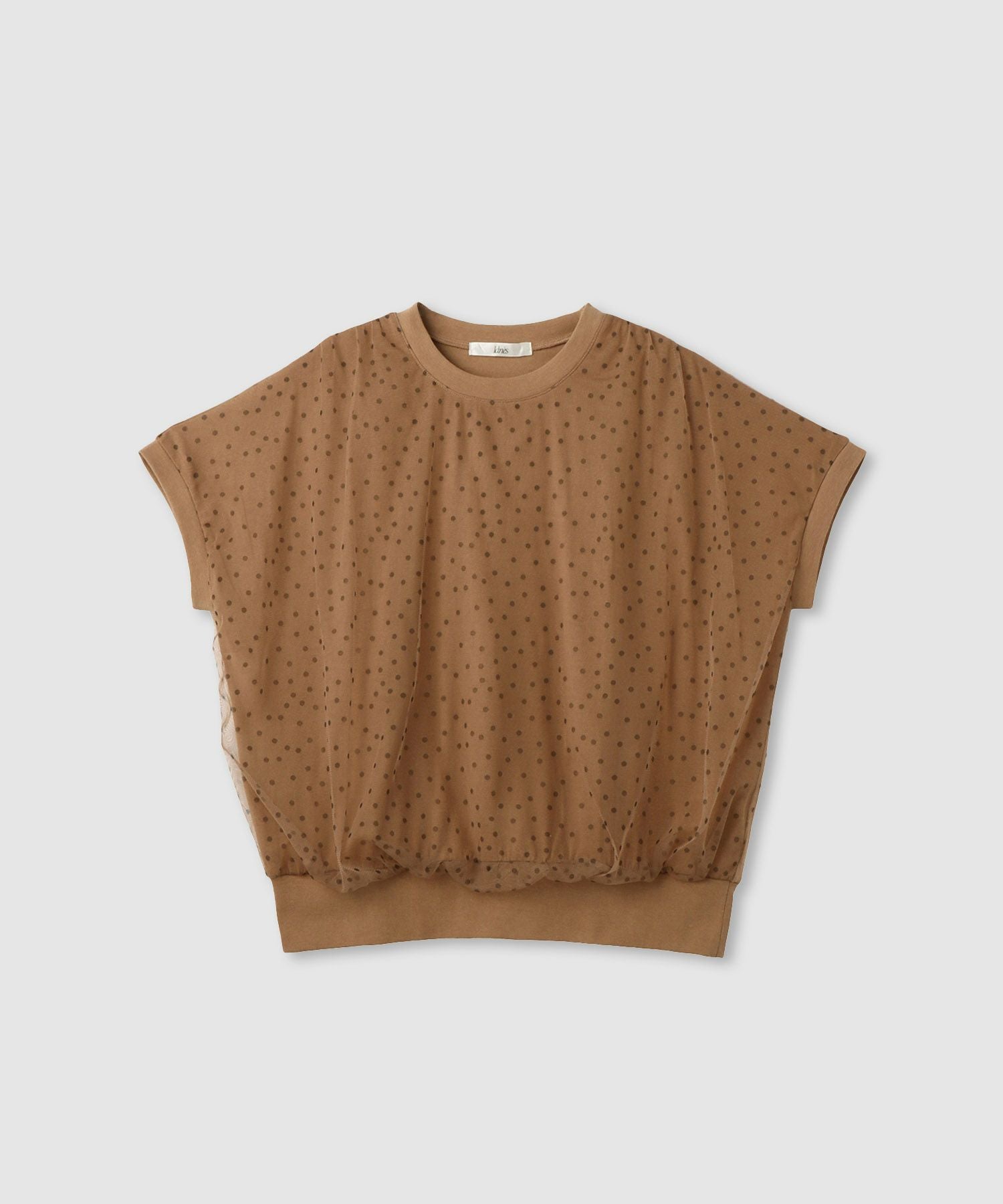 繊細なドットチュールが女性らしさを引き立てるフレンチスリーブプルオーバー。
