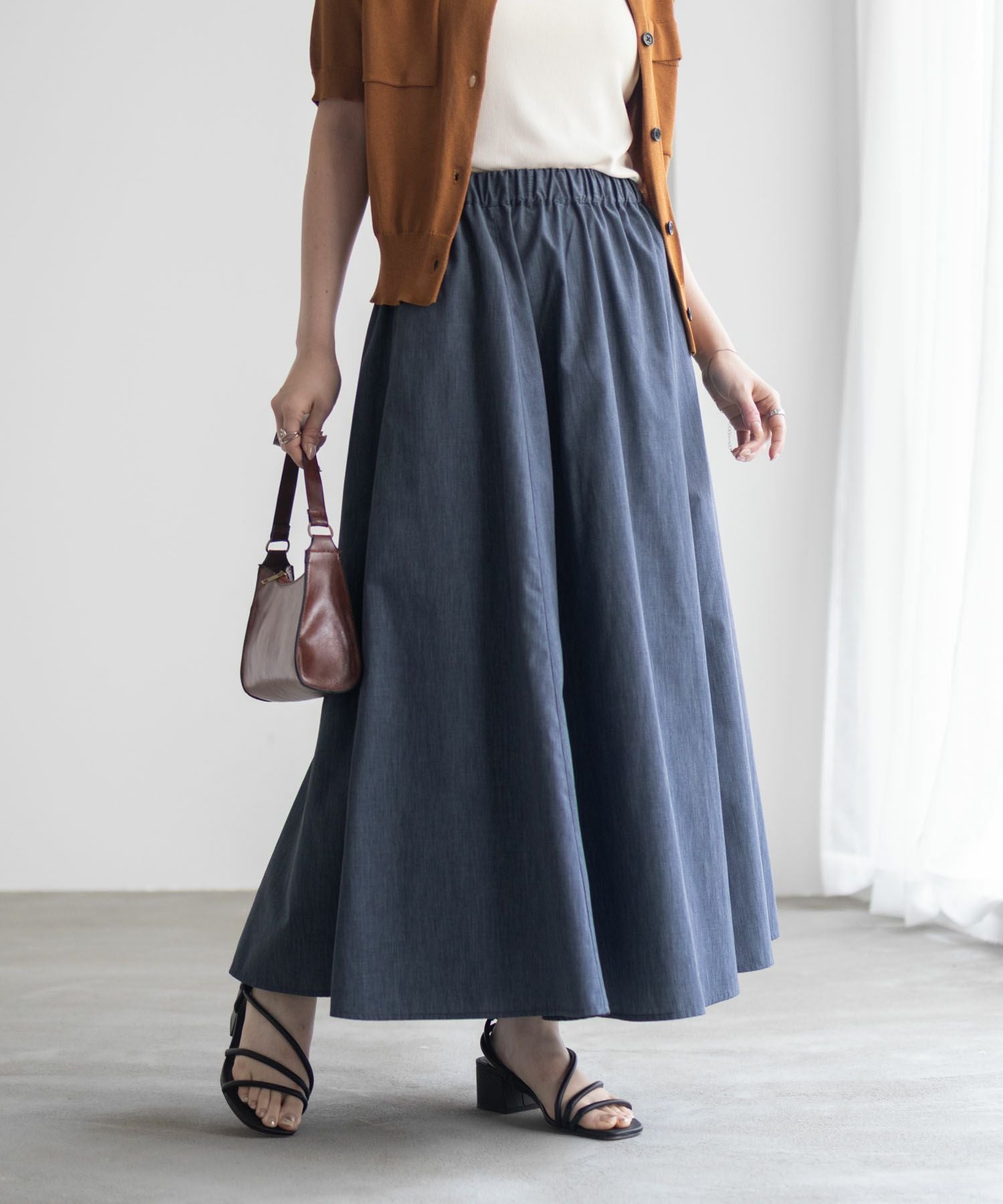 デニムのような見え方なのに、フラットでクリーンな表面感が魅力のサーキュラースカート。