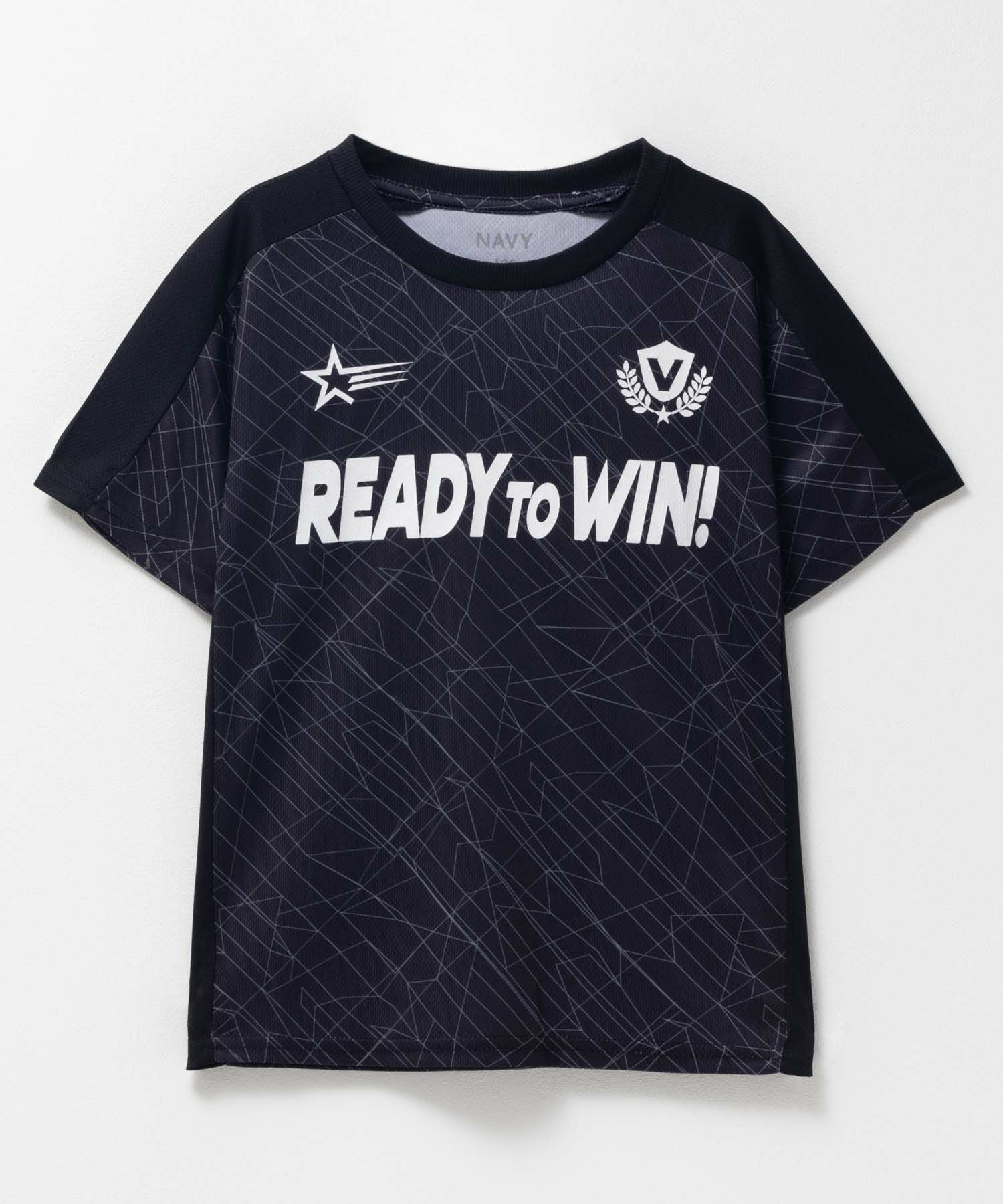 ネイビー 半袖Tシャツ 子供服 男の子 ボーイズ メッシュ ドライ 速乾 配色切替 プリント 総柄 白 黒 ネームタグ クルーネック カットソー 通園 通学