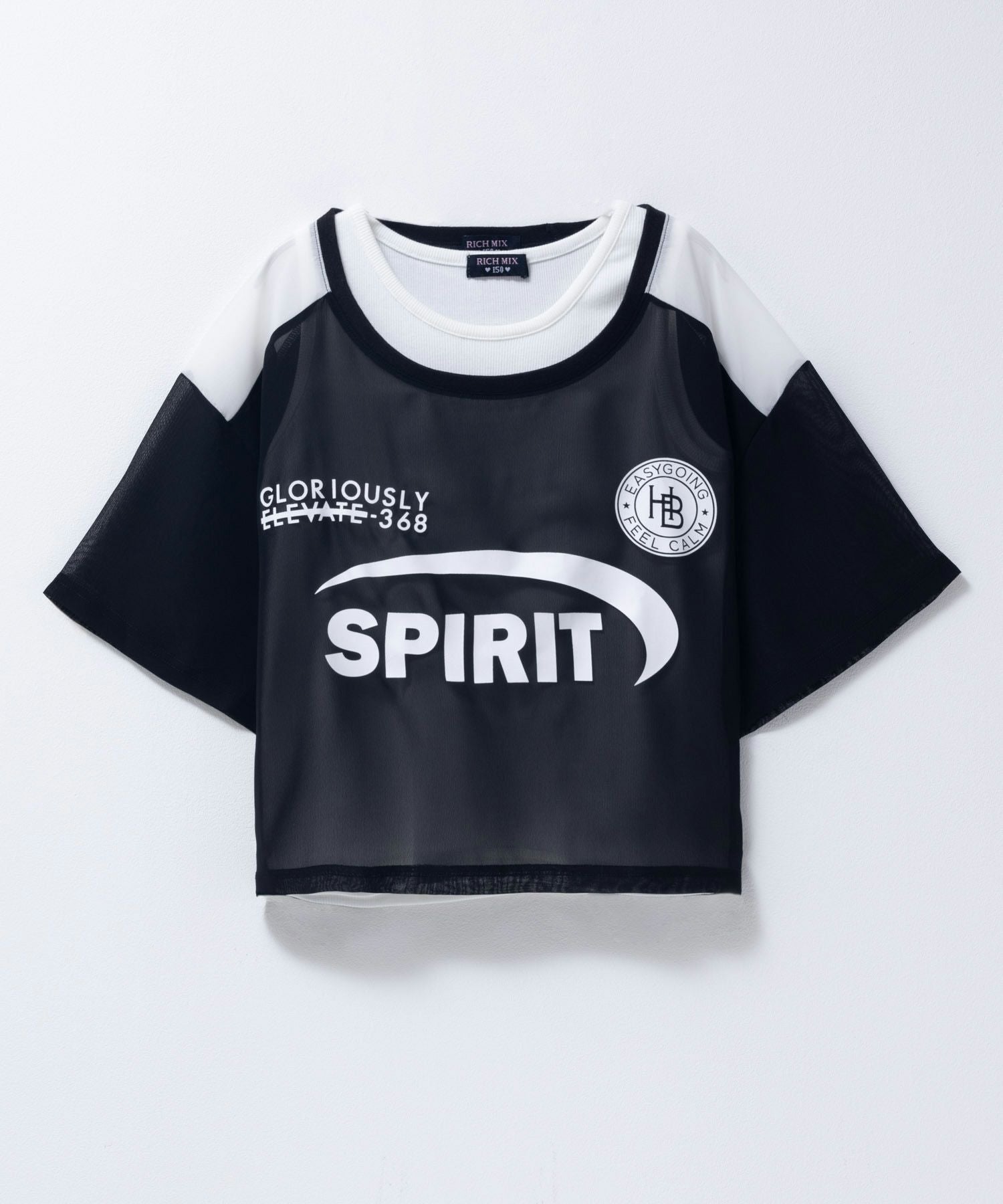 リッチミックス 半袖Tシャツ タンクトップ アンサンブル 子供服 女の子 ガールズ 冷感 ひんやり シアー 透け感 リブ プリント 白 黒 カットソー セットアイテム