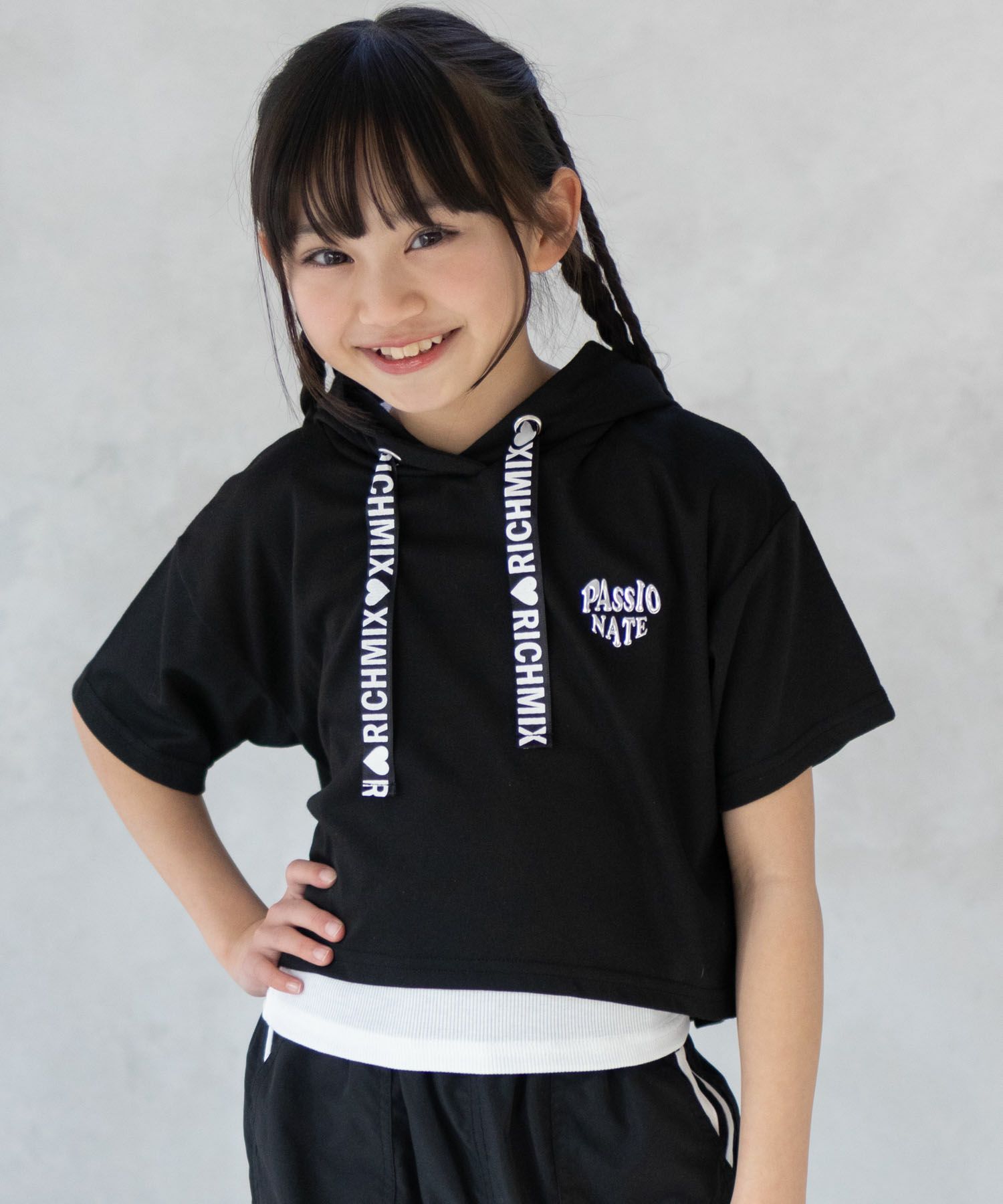 リッチミックス パーカー スウェット タンクトップ アンサンブル 子供服 女の子 ガールズ ロゴ 白 黒 プルオーバー プルパーカー