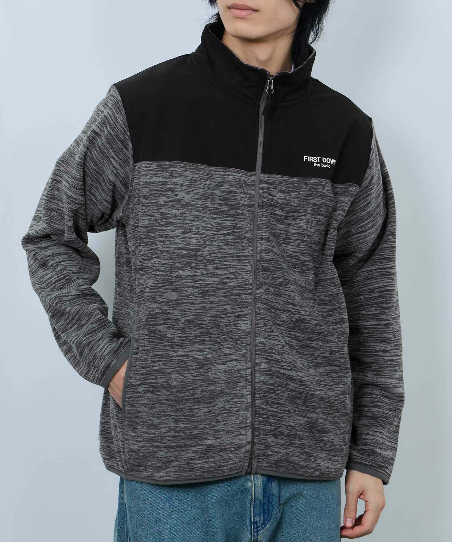 ファーストダウン フリース ジャケット ブルゾン あったか 暖かい スタンドネック 杢調 黒 ユニセックス レディース