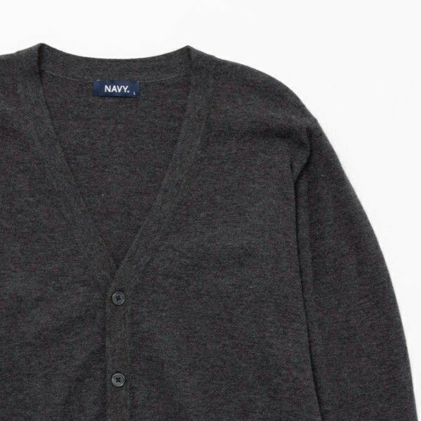 ネイビー カーディガン Vネック ウール混 洗える リブ 無地 ボタン 長袖 ライトアウター 羽織り