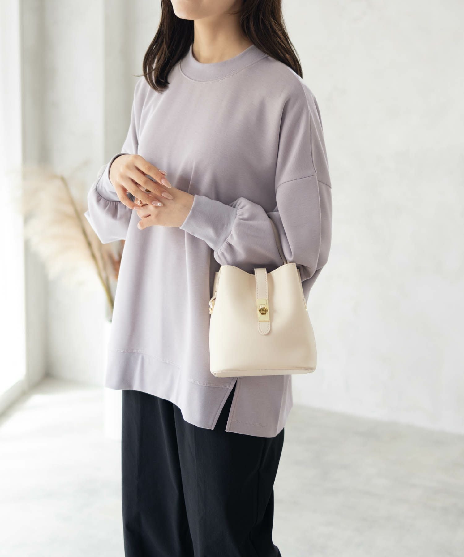 トレンドのボリューム袖は、素材の張りを活かしたタックタイプのデザイン。