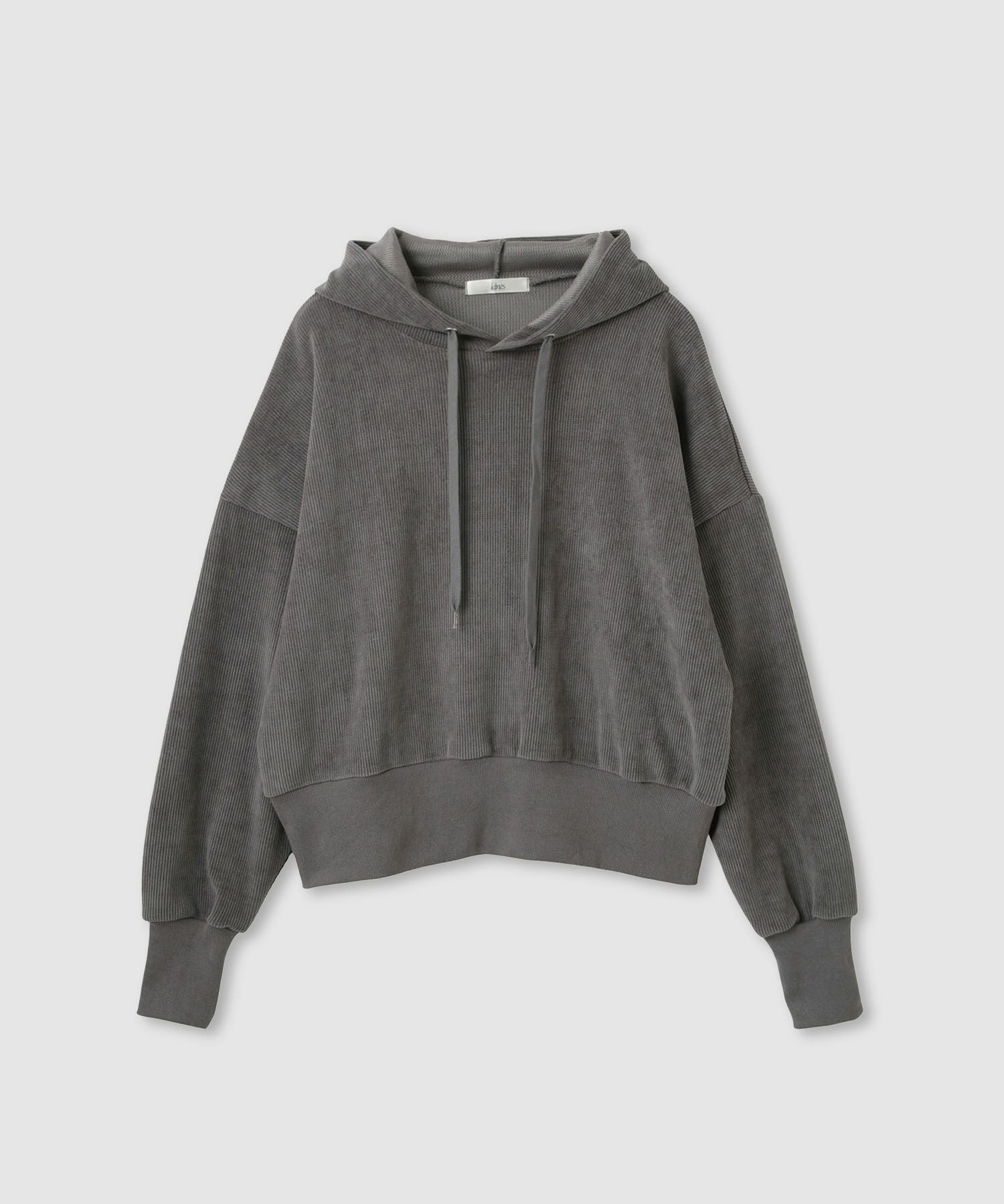 イドネス パーカー ベロア サーマル ドロップショルダー ショート丈 ゆったり 抜け感 白 プルオーバー プルパーカー