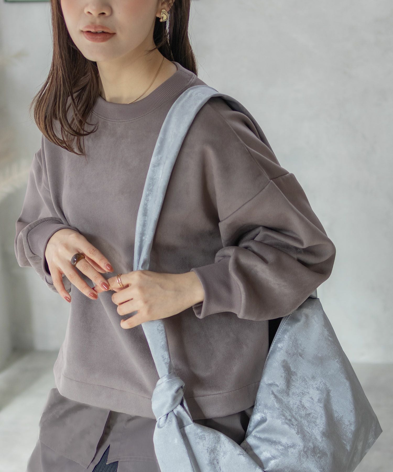 カットソーのスエード素材。