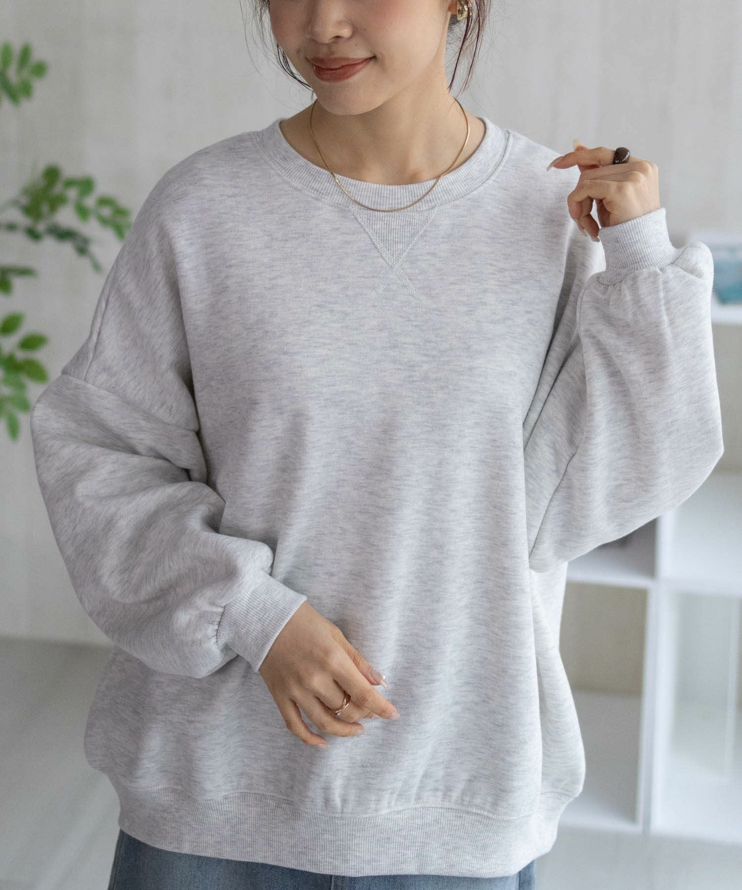 袖口にボリュームを持たせたゆったりシルエットのスウェットプルオーバー。