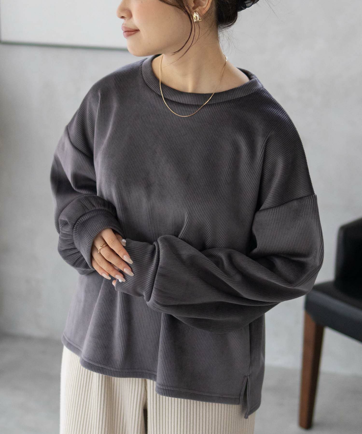 裏ベロアで暖かく、デイリーに着られる寒い季節にぴったりなプルオーバーです。