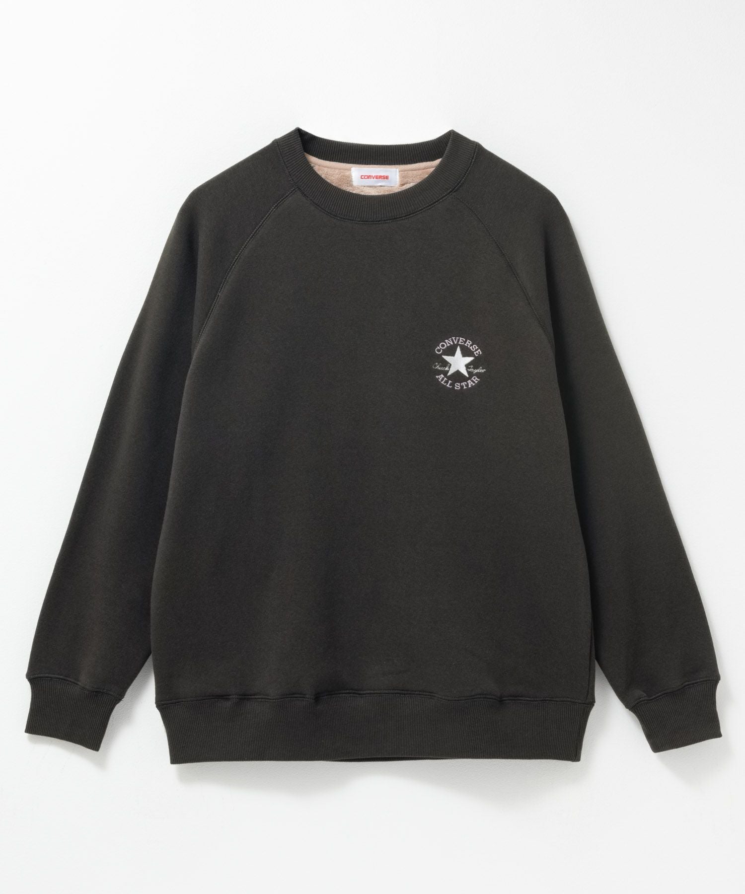 コンバース トレーナー スウェット 裏起毛 裏地 シャギー 暖かい あったか ワンポイント ロゴ 刺繍 白 黒 クルーネック プルオーバー