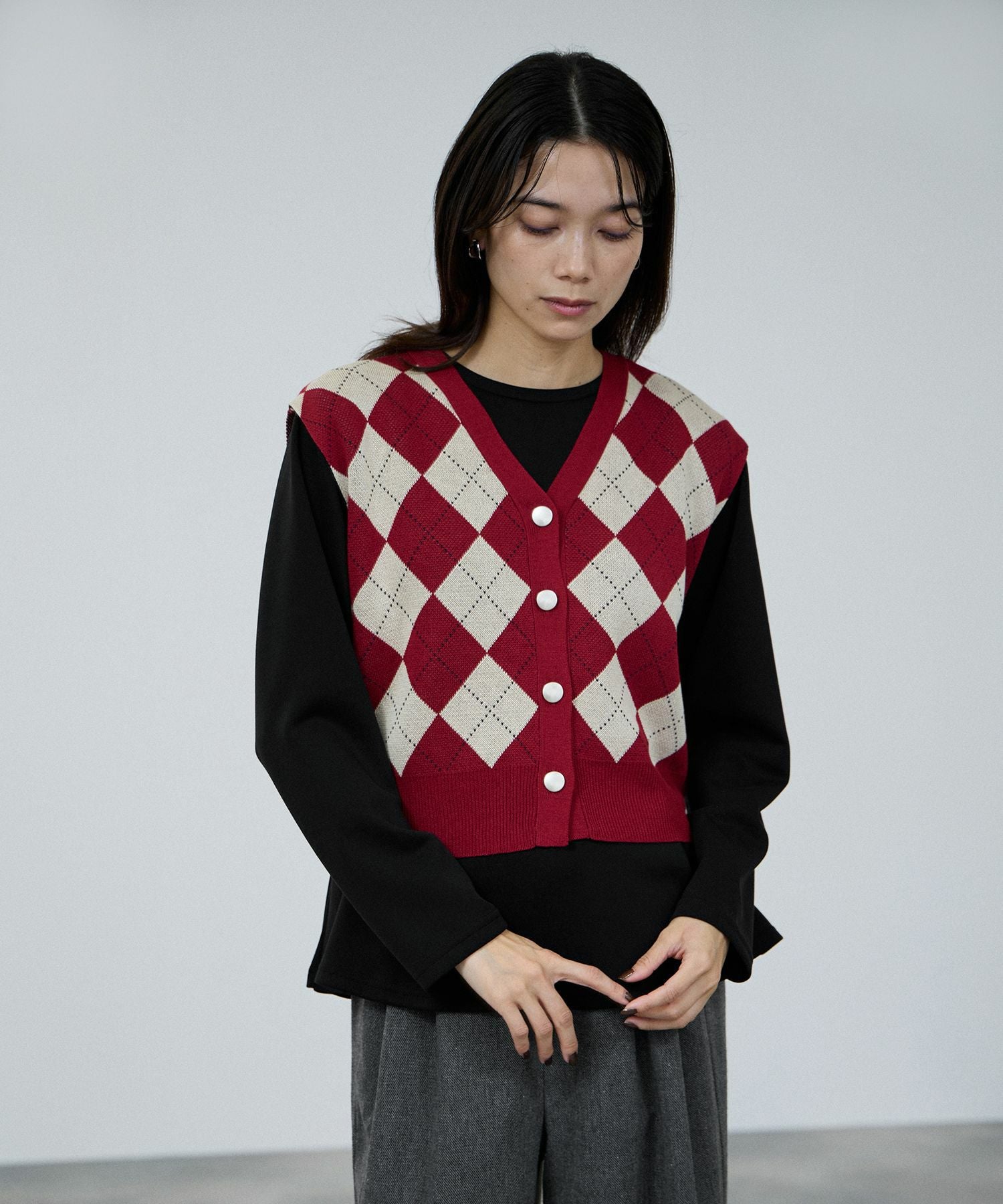 トレンドのクラシカルなアーガイル柄と、無地の2タイプです。