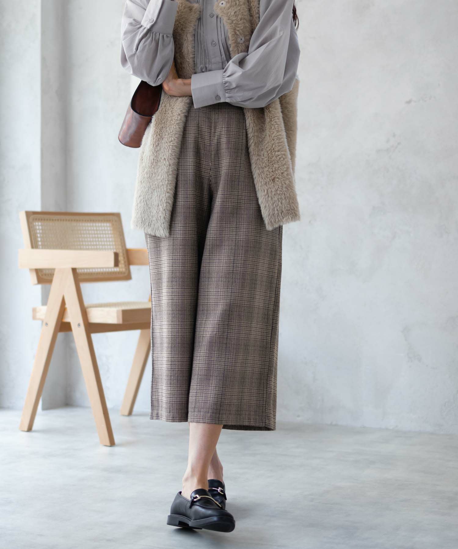 落ち感のある柔らかなTR素材を使用したワイドクロップドパンツです。