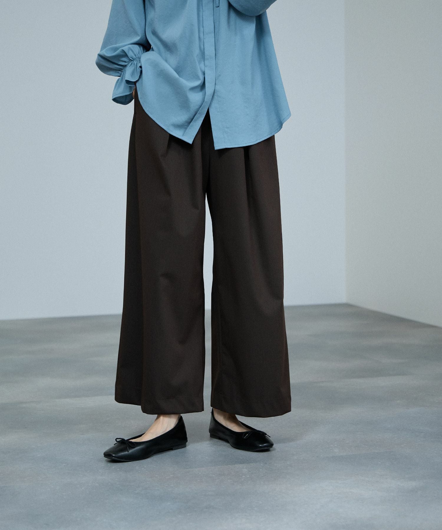 きちんと感のあるウールライクな素材を使用した、上品さが際立つイージーパンツ。