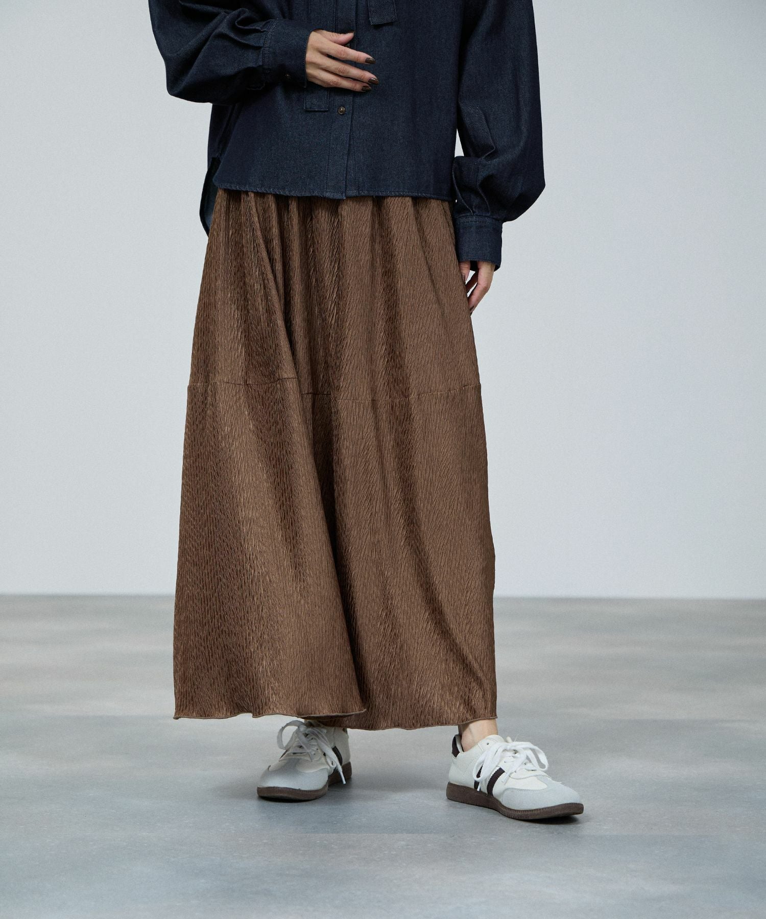 揺れるたびに印象を変える、動きのあるシルエットが魅力の変形プリーツスカート。