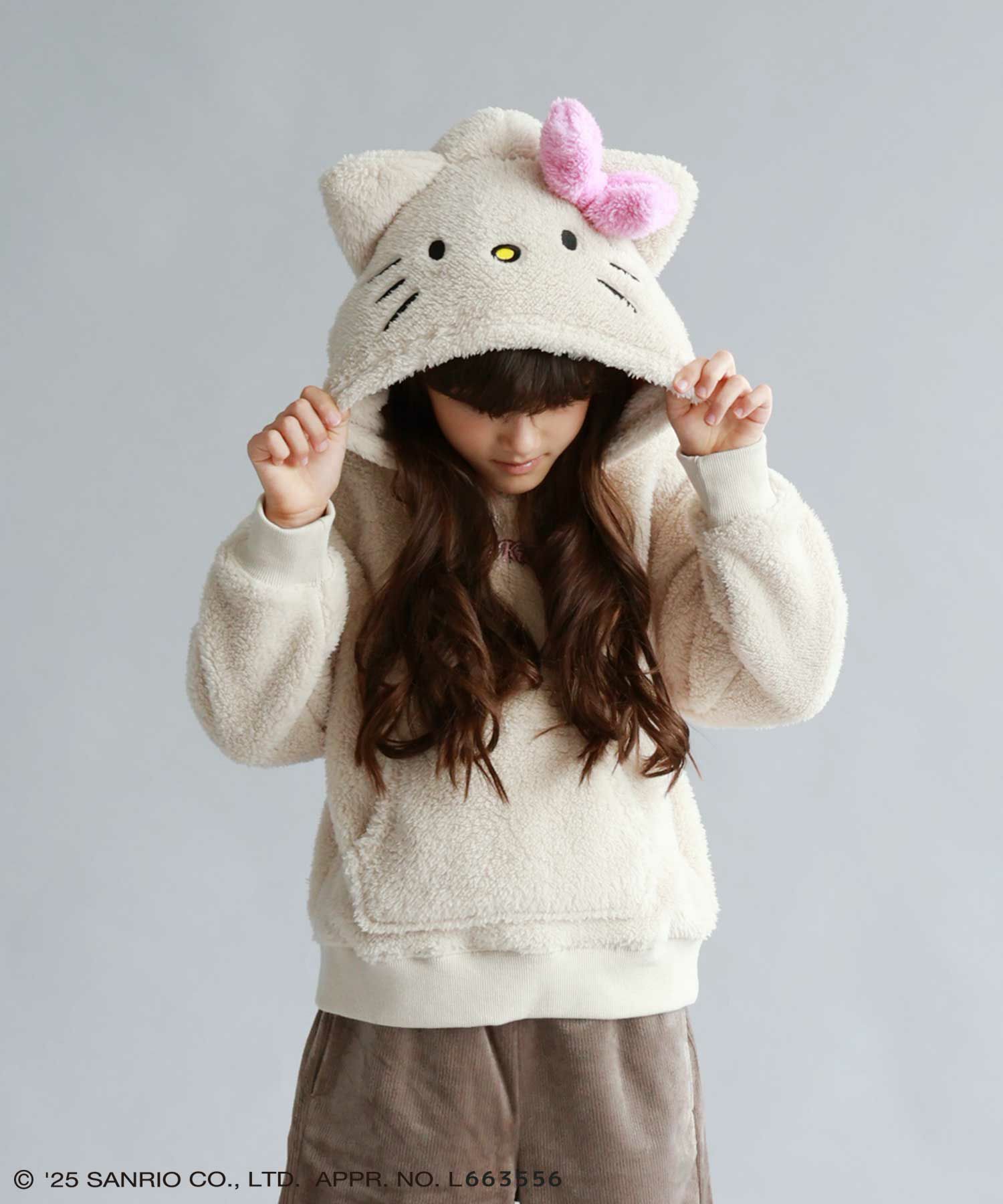 パーカー 長袖 シャギー ボア 子供服 女の子 ガールズ ゆったり キャラクター 日焼け ハローキティ ポケット 耳付き プルオーバー プルパーカー ハロウィン コスチューム