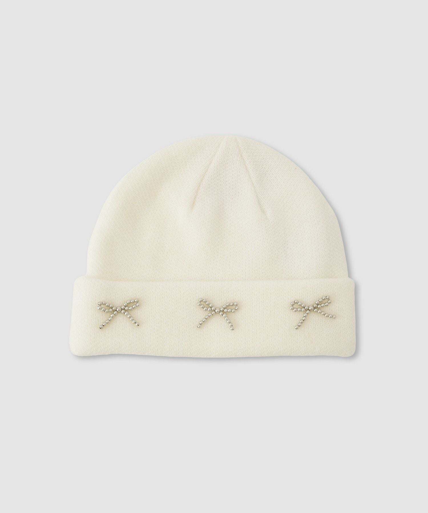冬のコーデを可愛らしく彩る、リボンビーズ付きのあったかニットキャップです。