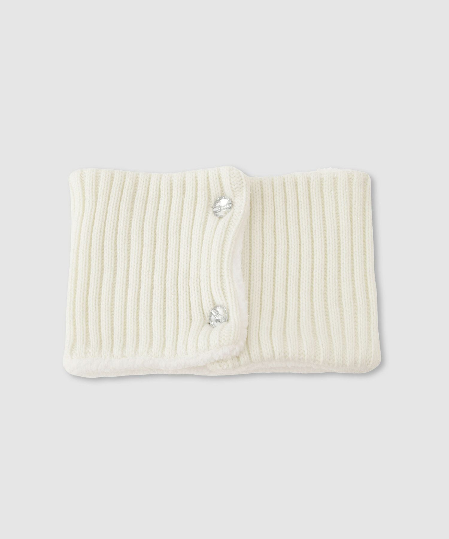 リッチミックス ネックウォーマー ニット 裏ボア 子供服 女の子 ガールズ ラメ キラキラ ボタン 白 あったか マフラー