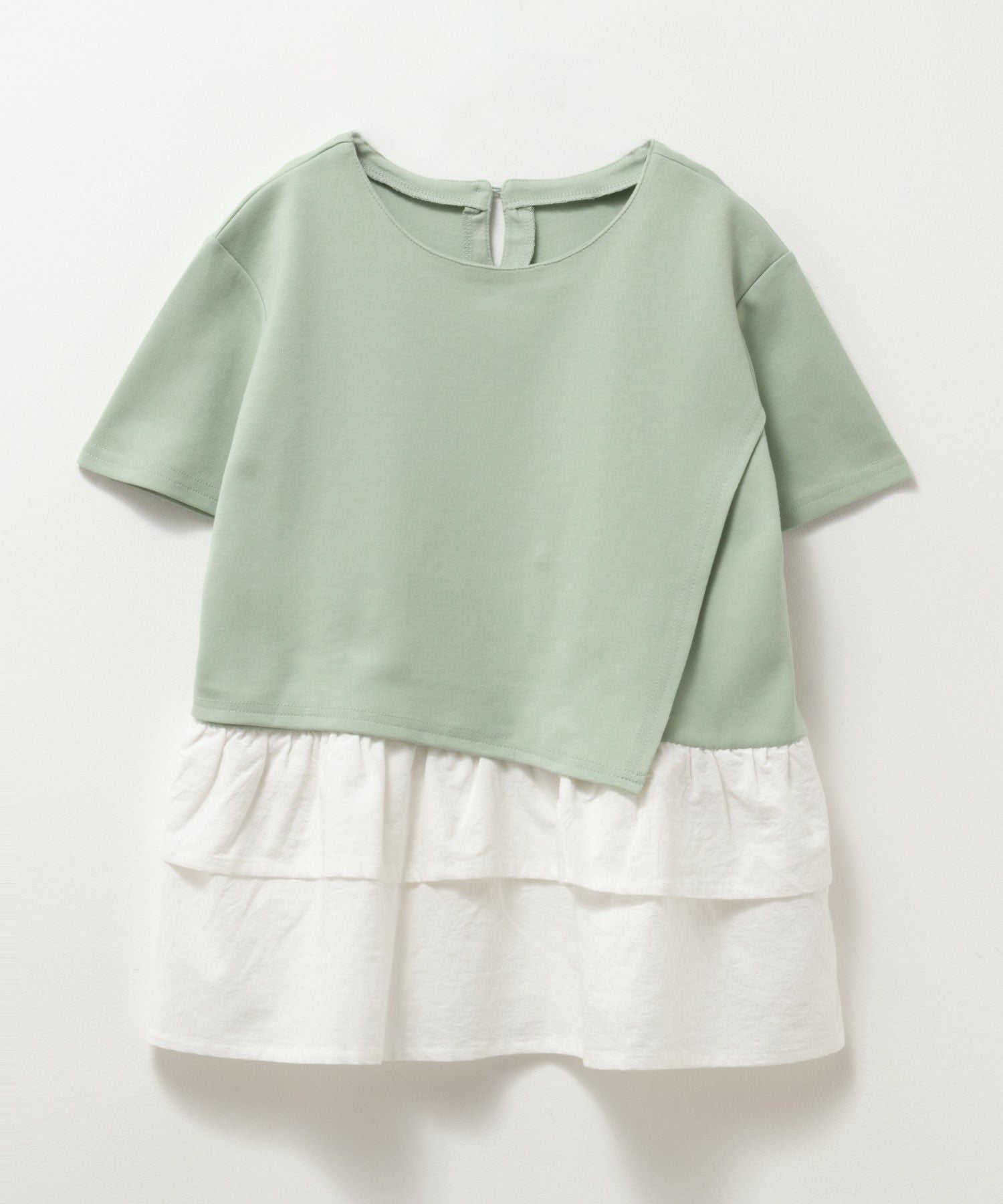 ネイビー 半袖Tシャツ チュニック ポンチ素材 子供服 女の子 ガールズ フェイクレイヤード 裾フリル ボタン カットソー