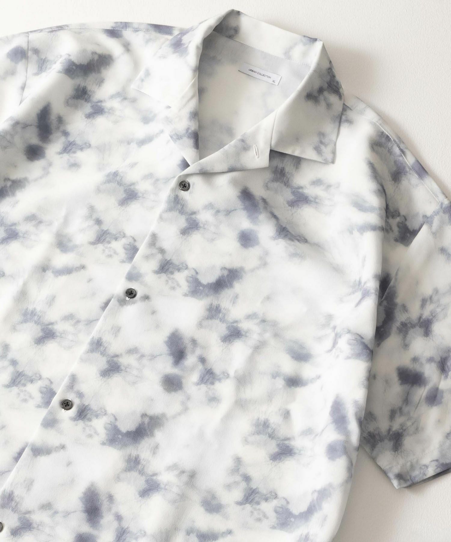 アーバンコレクション 半袖シャツ カジュアルシャツ ポリトロ素材 吸水速乾 接触冷感 アブストラクト柄 総柄 開襟シャツ オープンカラーシャツ