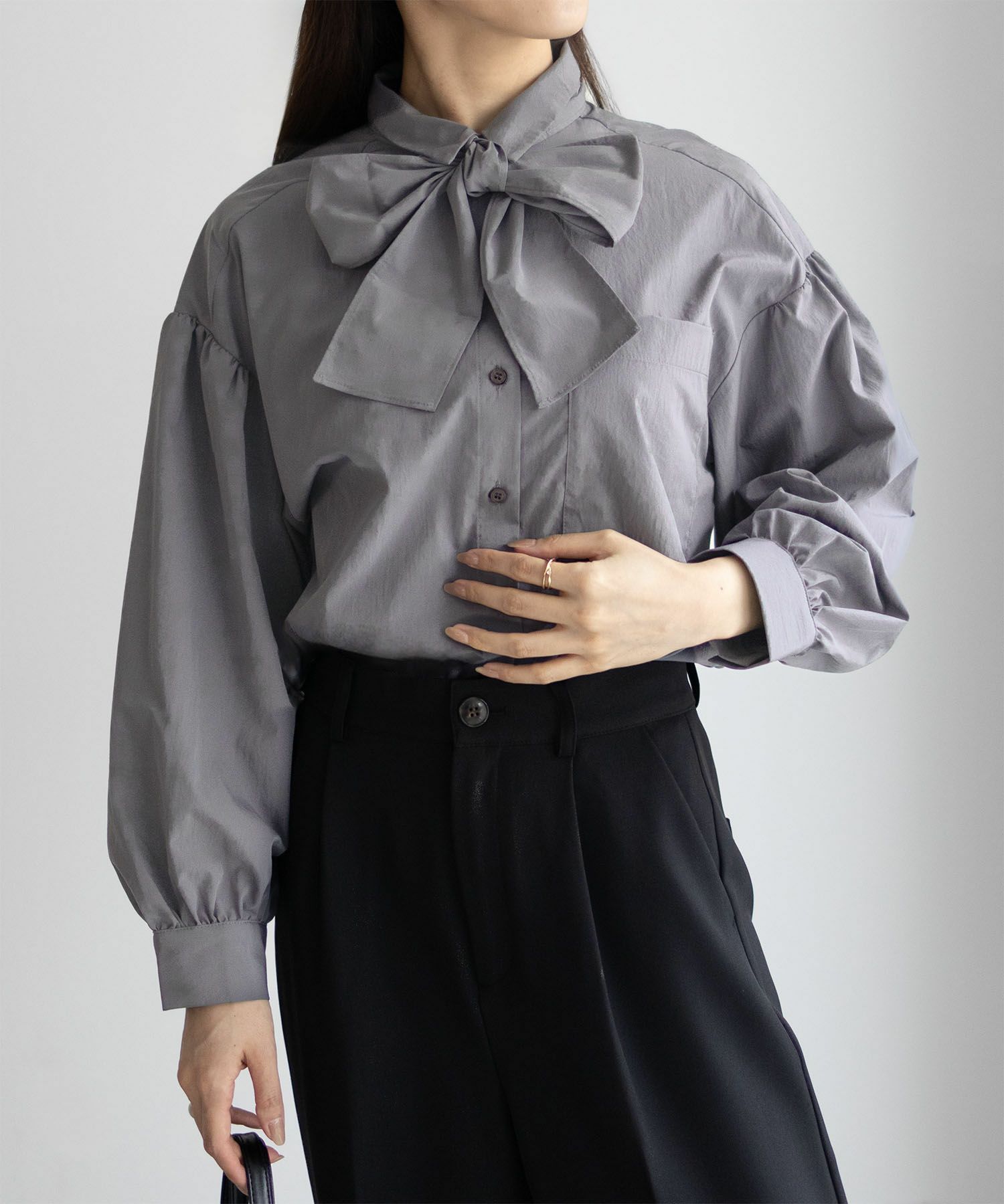 トレンドのボウタイ付ブラウスです。