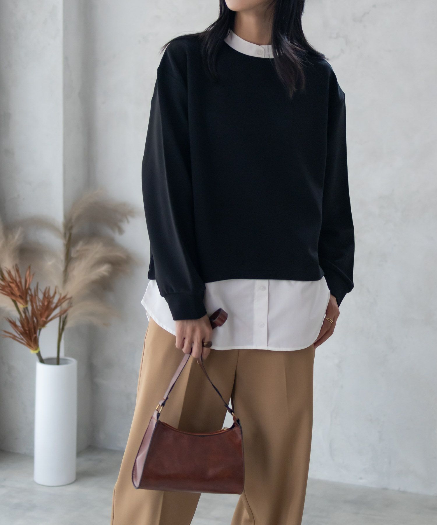 レイヤードしている様な切り替えスタイルなので、一枚でもコーディネートが完成。