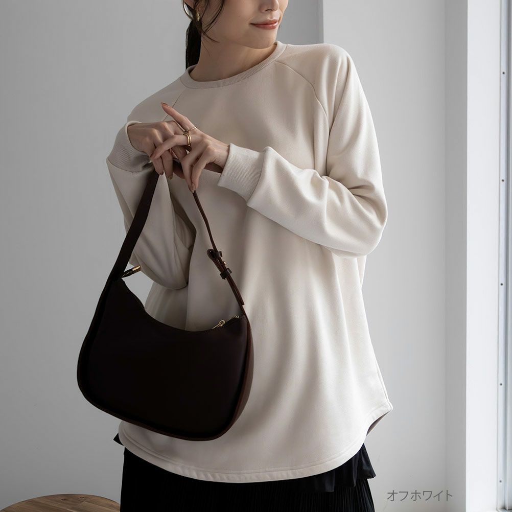 ネイビー チュニック 裏起毛 スウェードタッチ ラウンドヘム クルーネック リブ ラグランスリーブ プルオーバー 長袖 無地