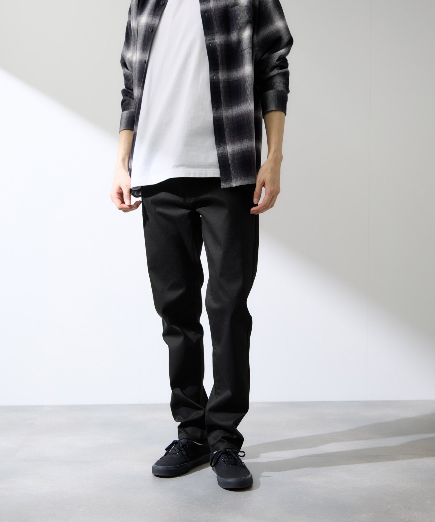 膝の曲げ伸ばしがスムーズで、細身のパンツ特有の窮屈感がありません。