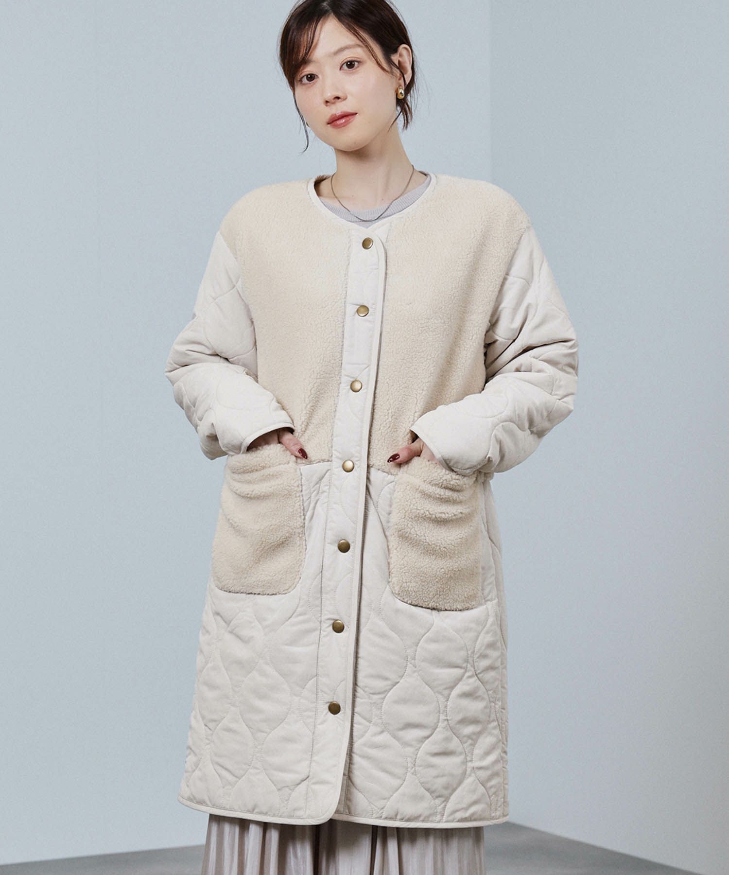 ネイビー キルティングコート ボア 中綿 暖かい あったか 軽量 はっ水 ポケット 白 黒 コート アウター
