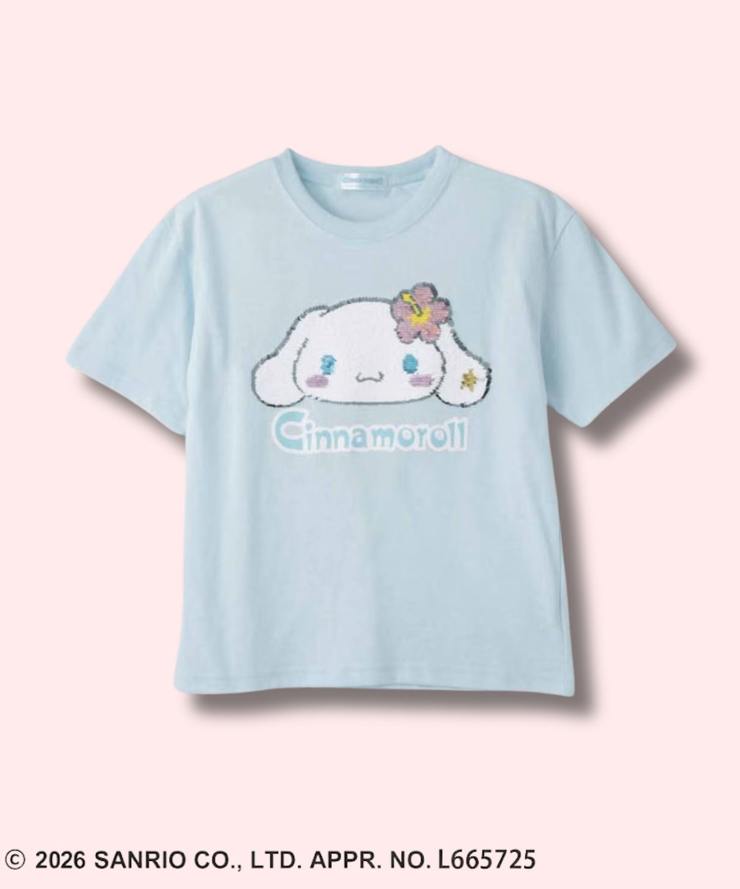 なでると色が変わるシナモロールのリバーシブルスパンコールがかわいい、半袖Tシャツ。
