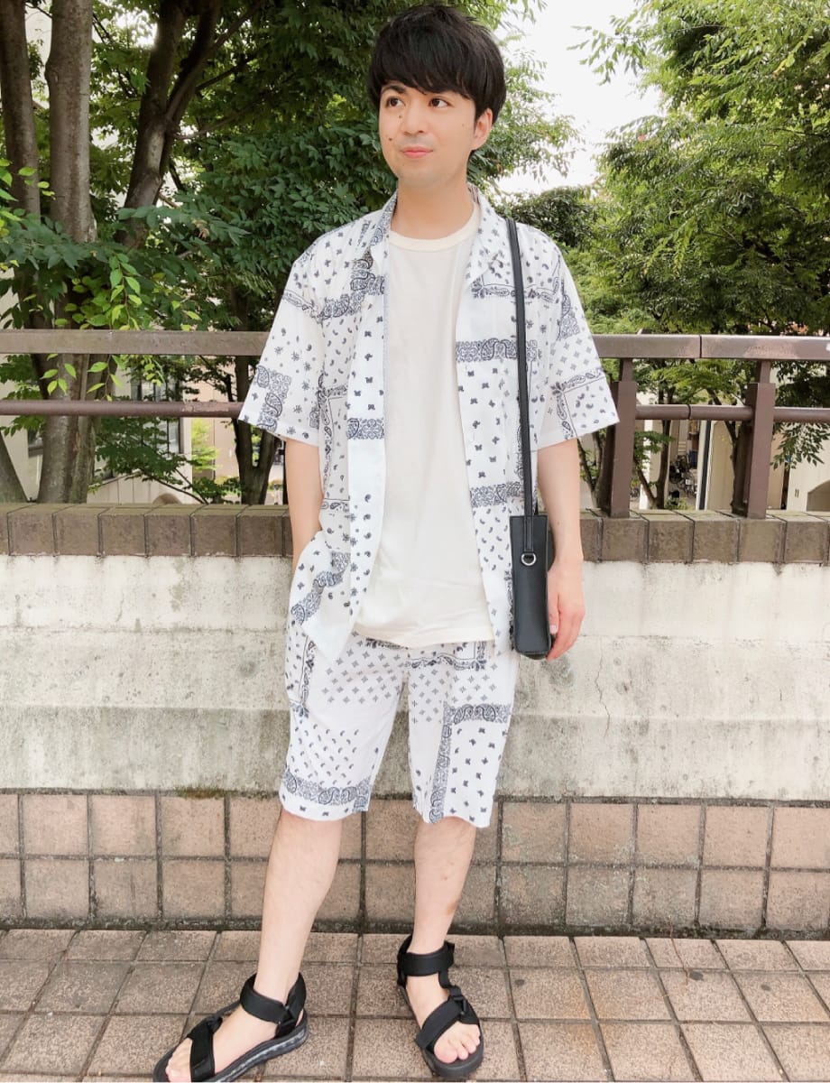 STAFF:ケンキタ 170cm着るだけでオシャレ度があがるバンダナ柄のセットアップ。